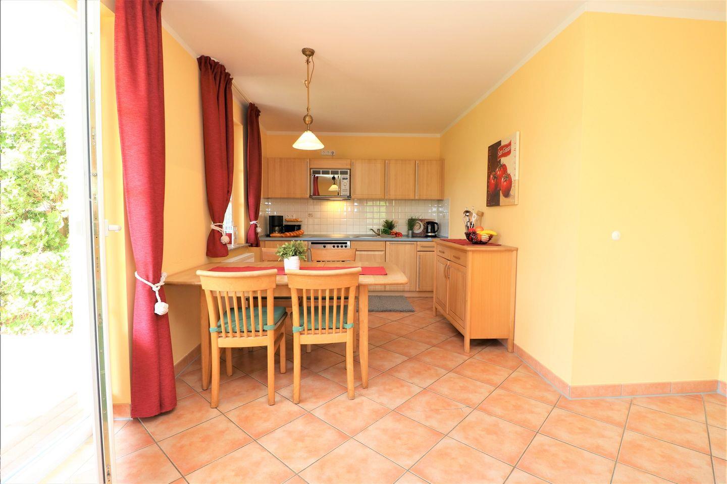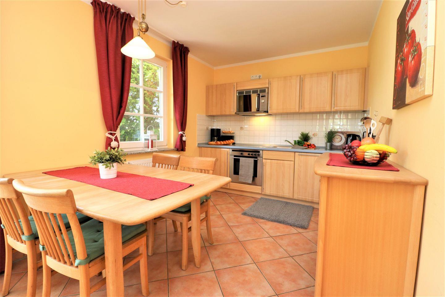 Im Inneren der Wohnung erwartet Sie eine moderne, offene Küche, die mit allem ausgestattet ist, was Sie zum Kochen und Genießen benötigen: ein Herd, Backofen, Spülmaschine, Mikrowelle und Kühlschrank stehen Ihnen zur Verfügung. Die gemütliche Sofaecke im Wohnzimmer lädt dazu ein, entspannende Abende vor dem Fernseher zu verbringen, wo Sie mit Satellitenanschluss für Unterhaltung sorgen können. Für gesellige Stunden gibt es auch einen Essbereich, der Platz für gemeinsame Mahlzeiten bietet.