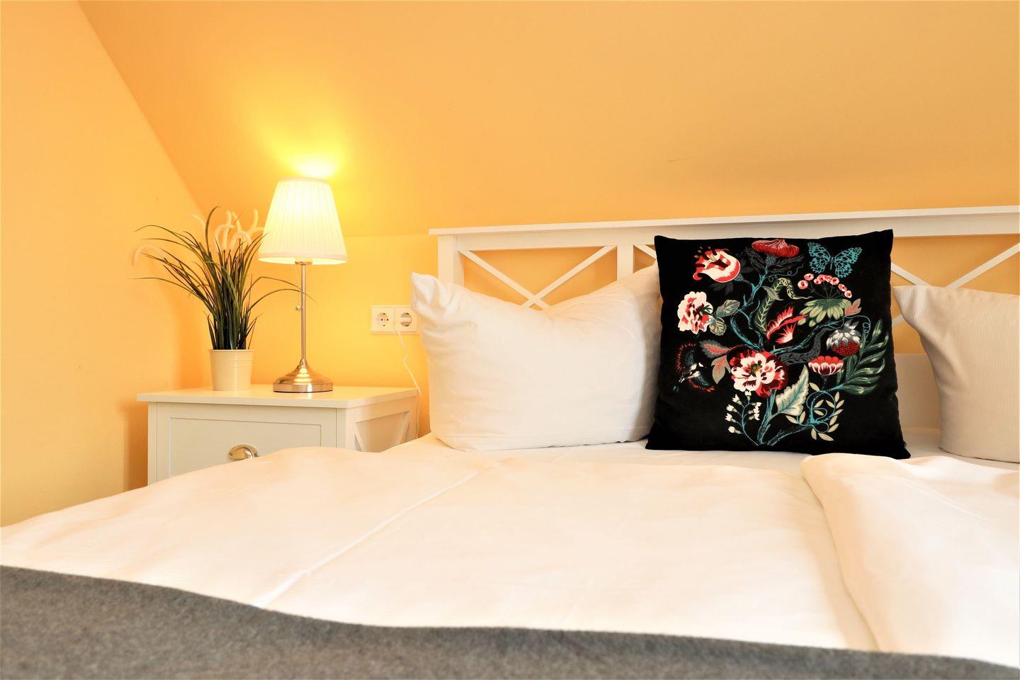 Die gut ausgestattete Ferienwohnung verfügt über zwei gemütliche Schlafzimmer, die mit Teppichboden ausgelegt sind und eine entspannte Atmosphäre schaffen. Im hellen Wohnzimmer erwartet Sie eine einladende Sofaecke sowie ein Esstisch, an dem Sie gesellige Abende verbringen können. Der Boden ist pflegeleicht gefliest und die zentrale Heizungsanlage sorgt für wohlige Wärme an kühlen Tagen. Hier können Sie sich wie zu Hause fühlen!