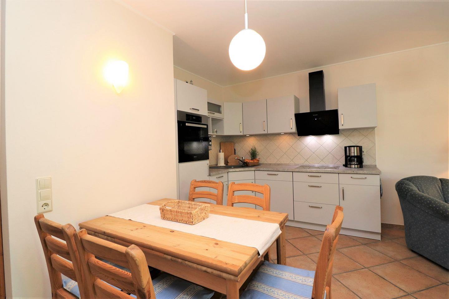 Dieses Appartement für maximal 4 Personen bietet auf gemütlichen 70 m² alles für einen erholsamen Urlaub. Es befindet sich in einer ruhigen Lage und verfügt über eine Terrasse mit Westausrichtung, auf der Sie den Nachmittag und Abend in der Sonne genießen können. Das Appartement besteht aus einem Wohnzimmer mit einer integrierten Küchenzeile und einem Kamin, der für eine behagliche Atmosphäre sorgt. Das Schlafzimmer ist mit einem Doppelbett ausgestattet, während das zweite Schlafzimmer mit Einzelbetten für eine komfortable Unterbringung sorgt. Das Badezimmer ist mit einer Dusche und einem WC ausgestattet und bietet zusätzlich eine Sauna, die für zusätzlichen Komfort sorgt – ideal zum Entspannen nach einem aktiven Tag. Ein Pkw-Stellplatz befindet sich direkt auf dem Grundstück und sorgt für bequemen Zugang. Haustiere sind in diesem Appartement nicht gestattet, und das Rauchen ist ebenfalls nicht erlaubt. WLAN ist in diesem Appartement leider nicht verfügbar. Dieses Appartement ist der perfekte Ort, um Ruhe zu finden und die Natur zu genießen – ideal für eine kleine Auszeit an der Ostsee!