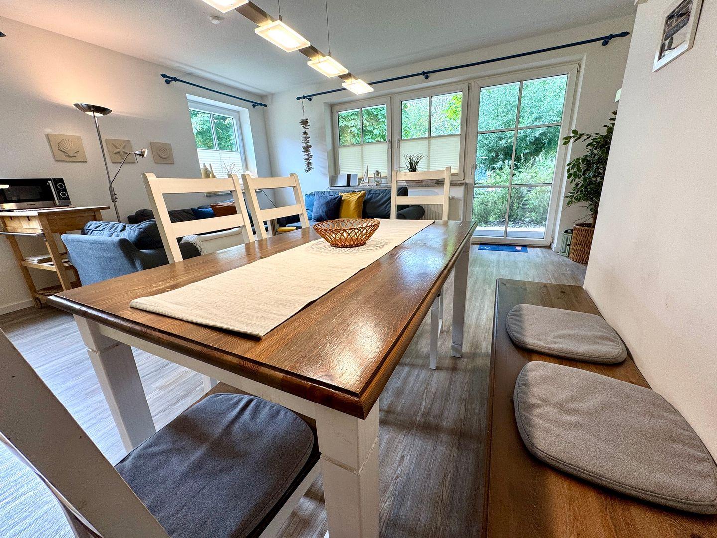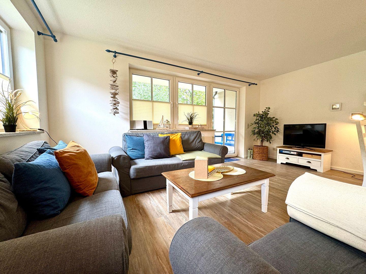 Ein geräumiges Erdgeschoss-Appartement für maximal 6 Personen mit einer sonnigen Südterrasse. Das Appartement bietet ein Wohnzimmer mit Schlafcouch und integrierter Küchenzeile, sowie zwei Schlafzimmer mit jeweils einem komfortablen Doppelbett. Das Badezimmer ist mit einer Dusche/WC und einer Waschmaschine, die gegen eine Gebühr genutzt werden kann ausgestattet. Haustier sind erlaubt, das Rauchen jedoch nicht. WLAN steht zur Verfügung, um Ihnen einen bequemen Internetzugang zu ermöglichen. Ihnen steht von Mai bis Oktober kostenlos ein Strandkorb am Strand zur Verfügung. Den Schlüssel erhalten Sie für Ihren Aufenthalt direkt über die Strandkorbvermietung Pagels. Diesem Appartement ist der Tiefgaragenstellplatz Nr. 28 zugeordnet.