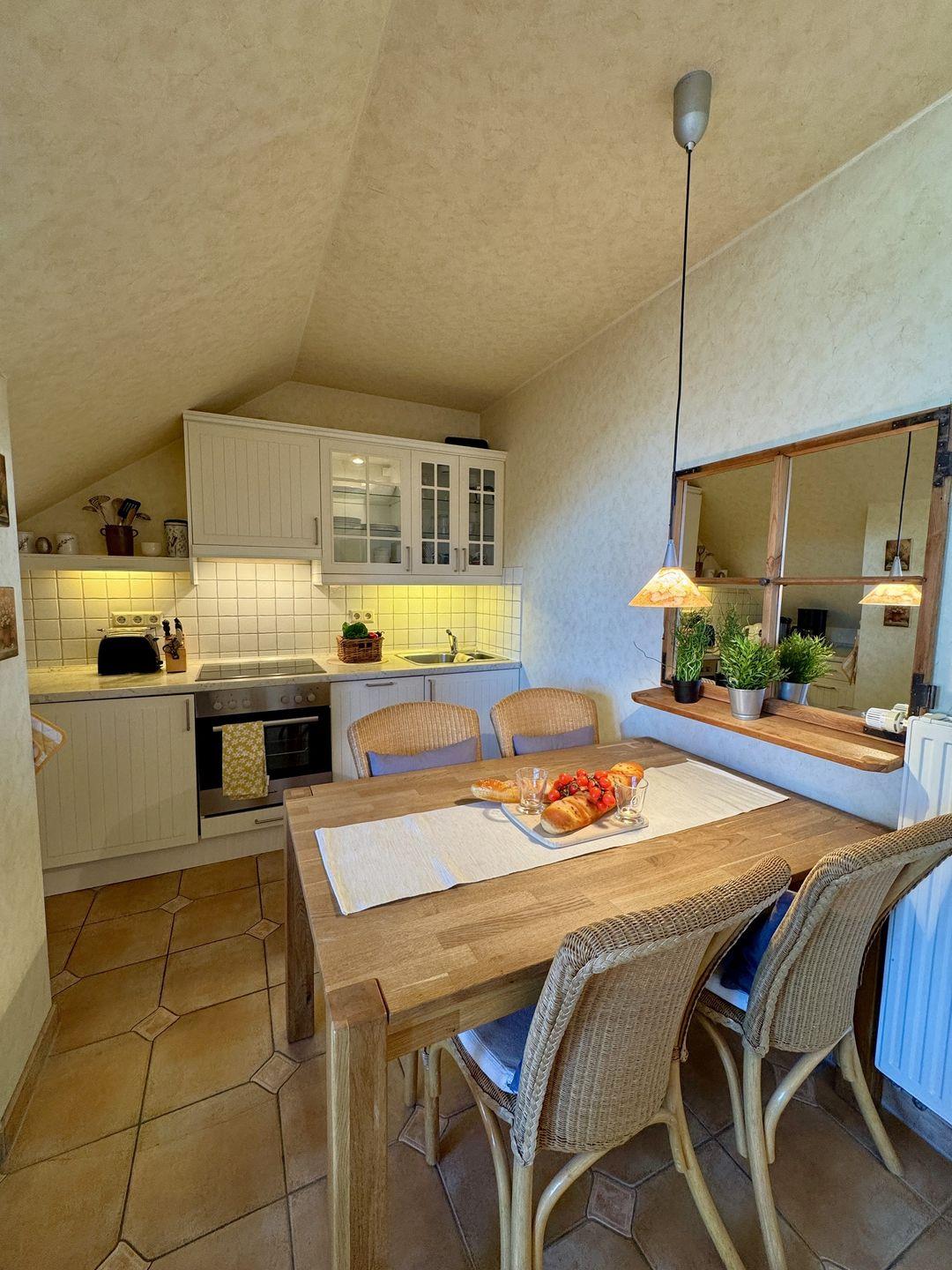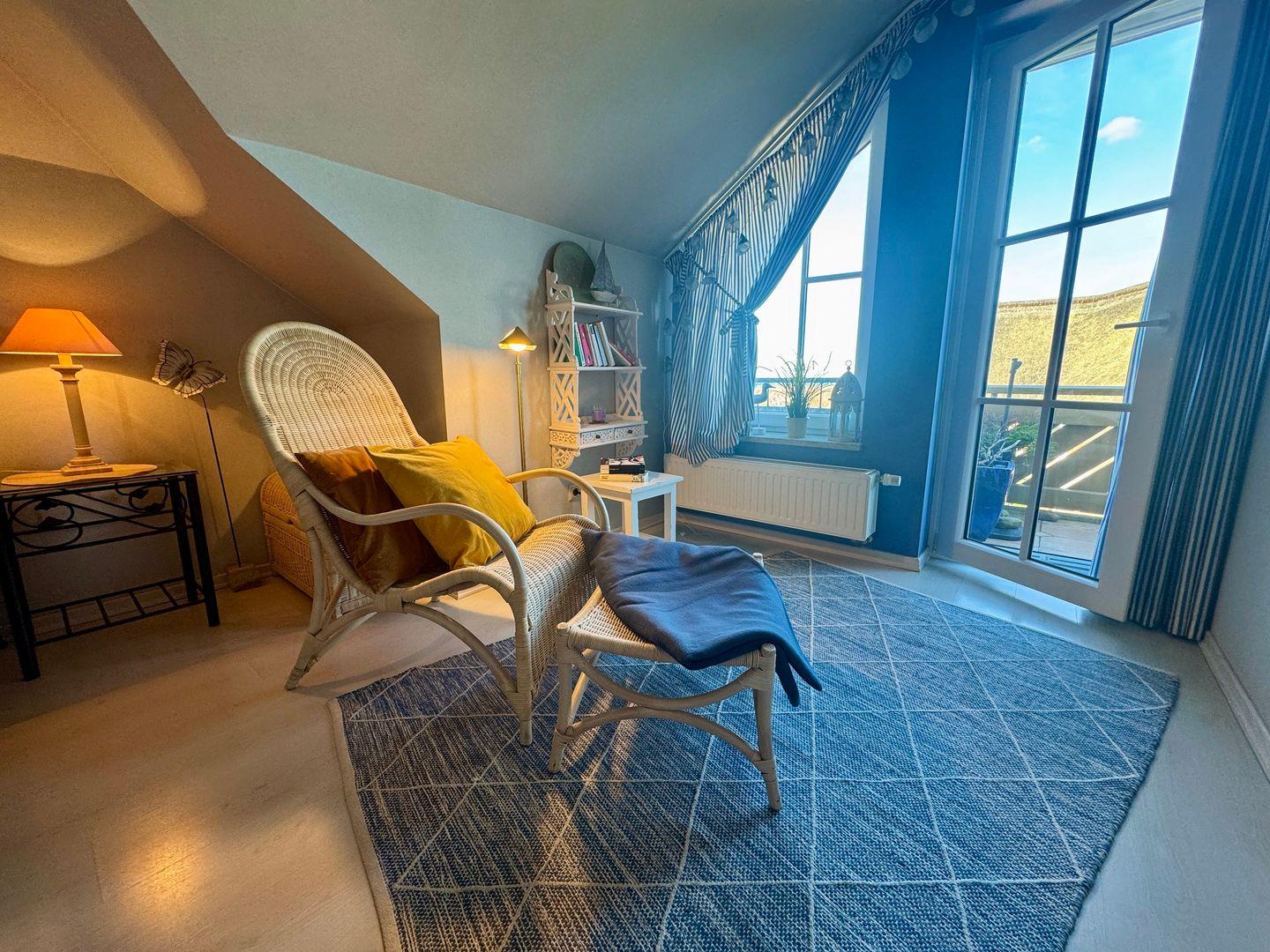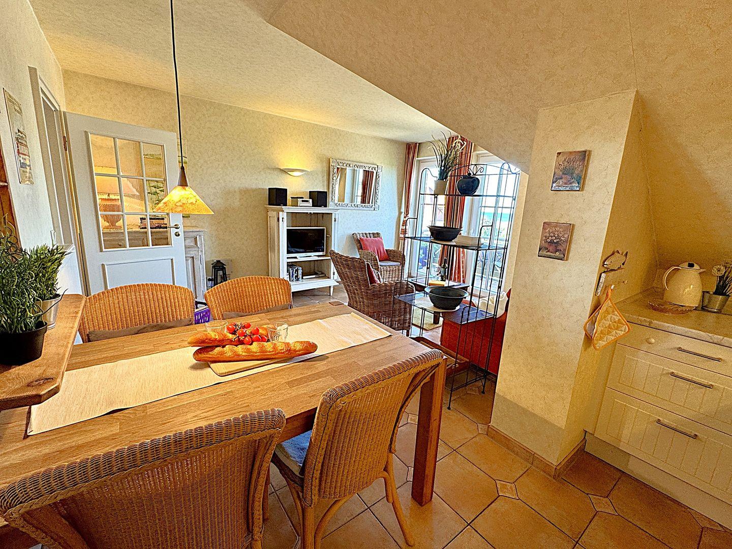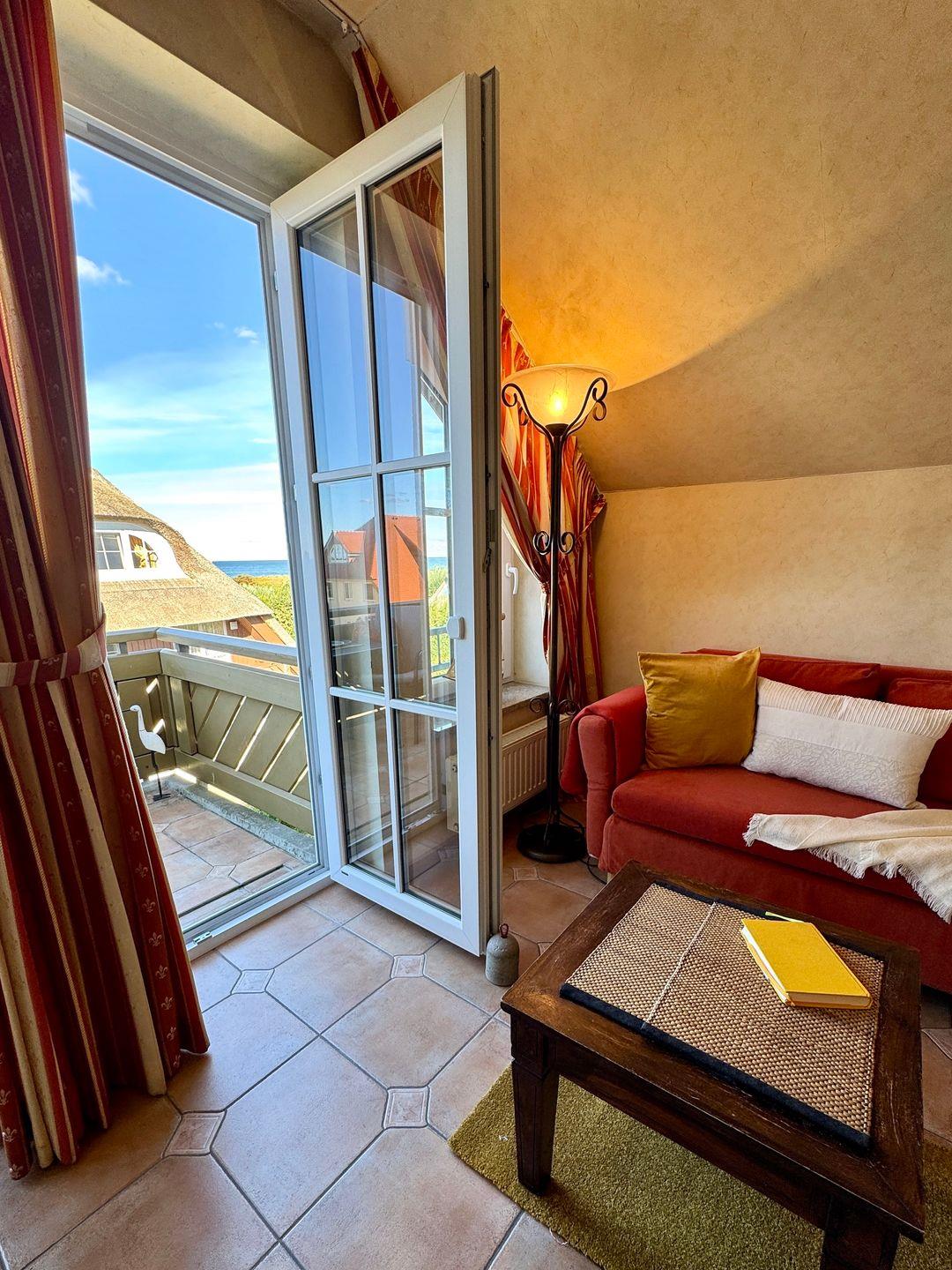 Ein gemütliches Dachgeschoss-Appartement für maximal 2 Personen mit einem Balkon Richtung Westen und Blick auf die Ostsee. Das Appartement verfügt über ein Wohnzimmer und integrierten Küchenzeile, sowie ein Schlafzimmer ist mit einem gemütlichem Doppelbett, für einen erholsamen Schlaf. Das Badezimmer verfügt über eine Badewanne und WC. Haustiere und Rauchen sind nicht gestattet, jedoch gibt es WLAN für einen bequemen Internetzugang während des Aufenthalts. Diesem Appartement wird der Tiefgaragenstellplatz Nr. 48 zugeordnet.