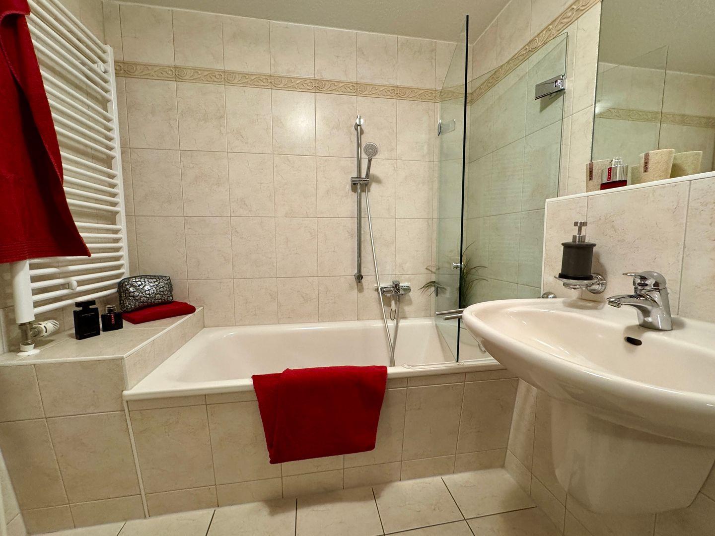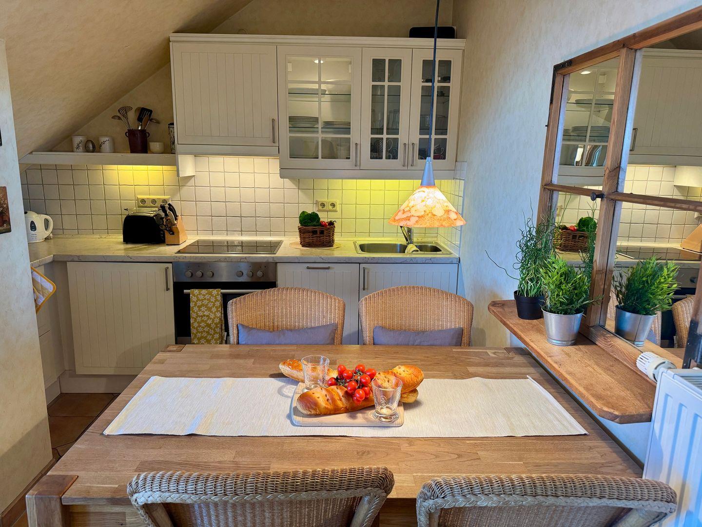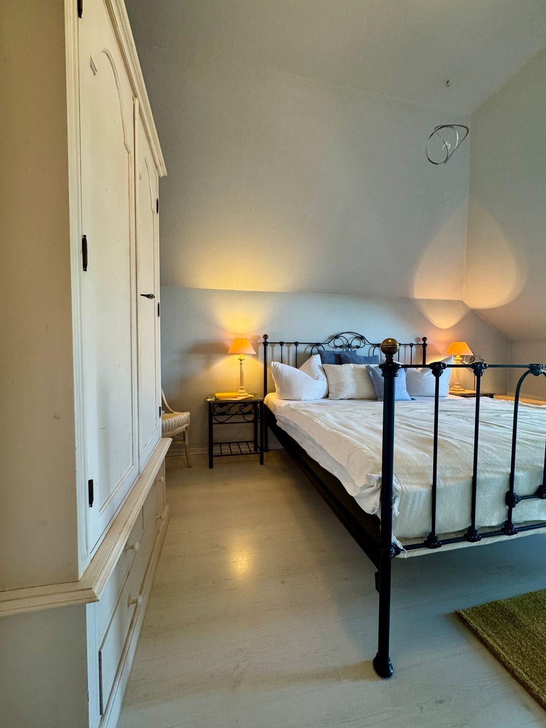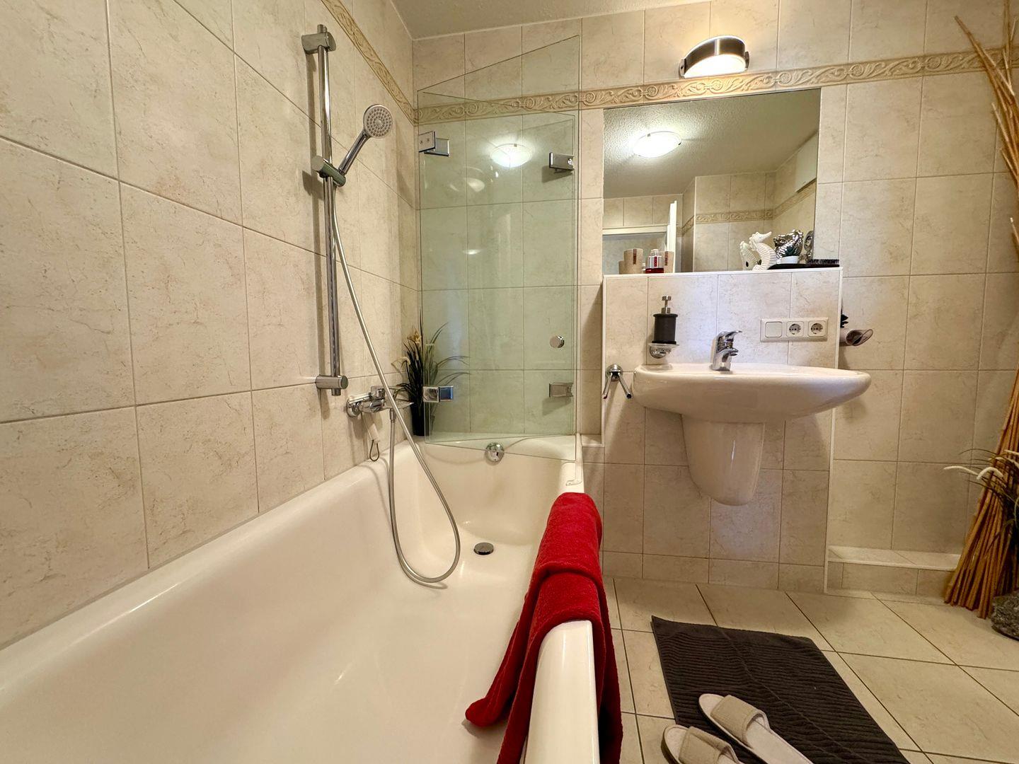 Ein gemütliches Dachgeschoss-Appartement für maximal 2 Personen mit einem Balkon Richtung Westen und Blick auf die Ostsee. Das Appartement verfügt über ein Wohnzimmer und integrierten Küchenzeile, sowie ein Schlafzimmer ist mit einem gemütlichem Doppelbett, für einen erholsamen Schlaf. Das Badezimmer verfügt über eine Badewanne und WC. Haustiere und Rauchen sind nicht gestattet, jedoch gibt es WLAN für einen bequemen Internetzugang während des Aufenthalts. Diesem Appartement wird der Tiefgaragenstellplatz Nr. 48 zugeordnet.