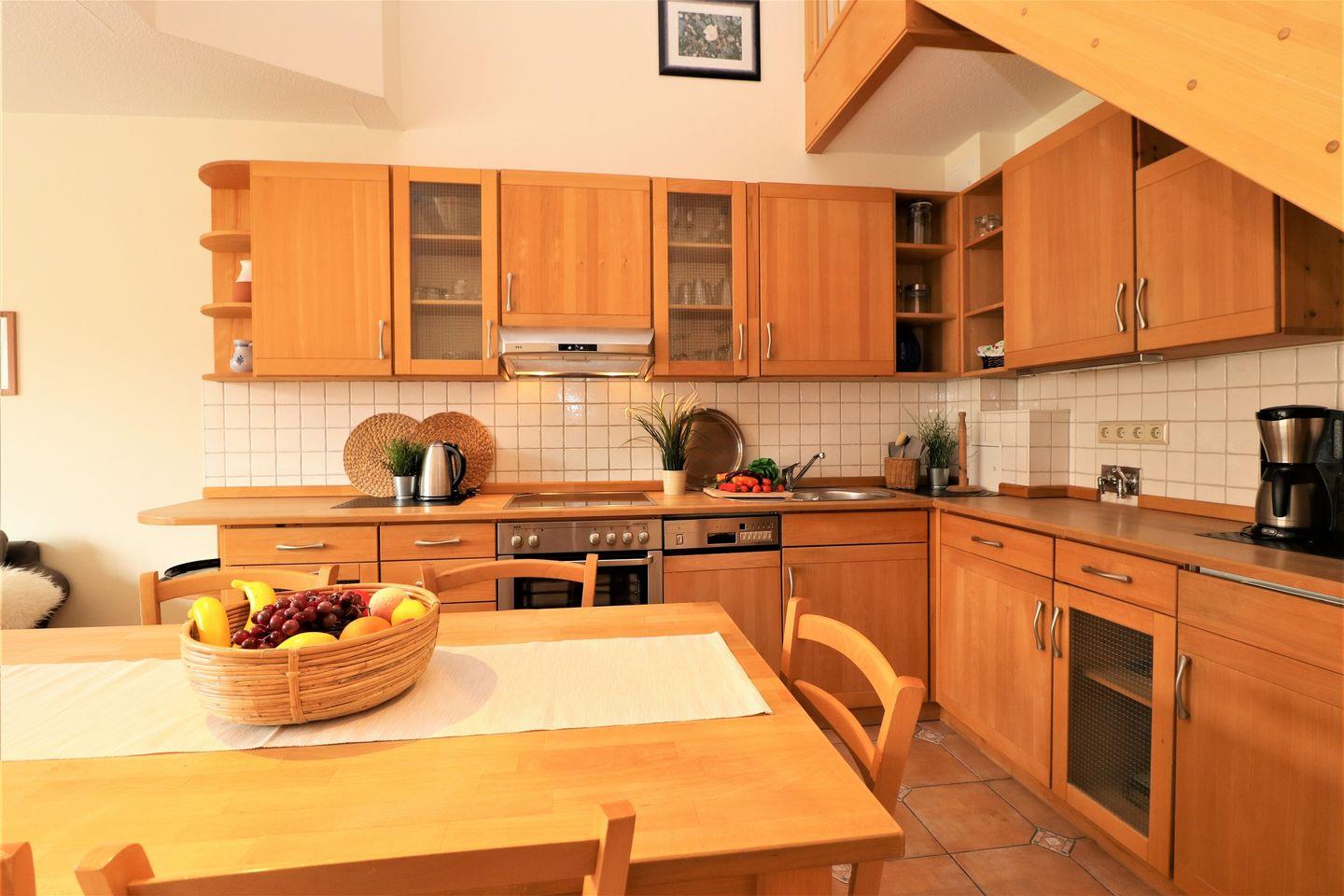 Ein großzügiges Maisonettappartement im Obergeschoss für maximal 4 Personen mit einem Balkon Richtung Westen. Das Appartement verfügt über ein Wohnzimmer mit integrierter Küchenzeile, ein Schlafzimmer ist mit einem gemütlichem Doppelbett und ein weiteres Schlafzimmer mit Einzelbetten. Das Badezimmer verfügt über eine Dusche und WC. Haustiere und das Rauchen sind nicht gestattet, jedoch steht WLAN zur Verfügung, um Ihnen einen bequemen Internetzugang zu ermöglichen. Diesem Appartement wird der Tiefgaragenstellplatz Nr. 71 zugeordnet.