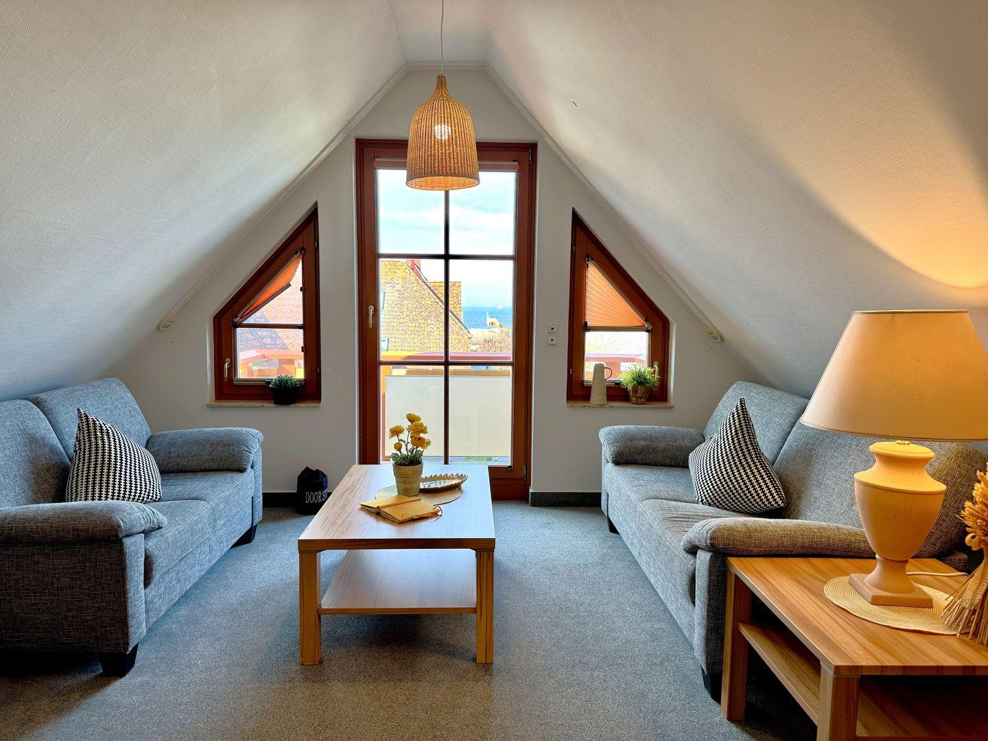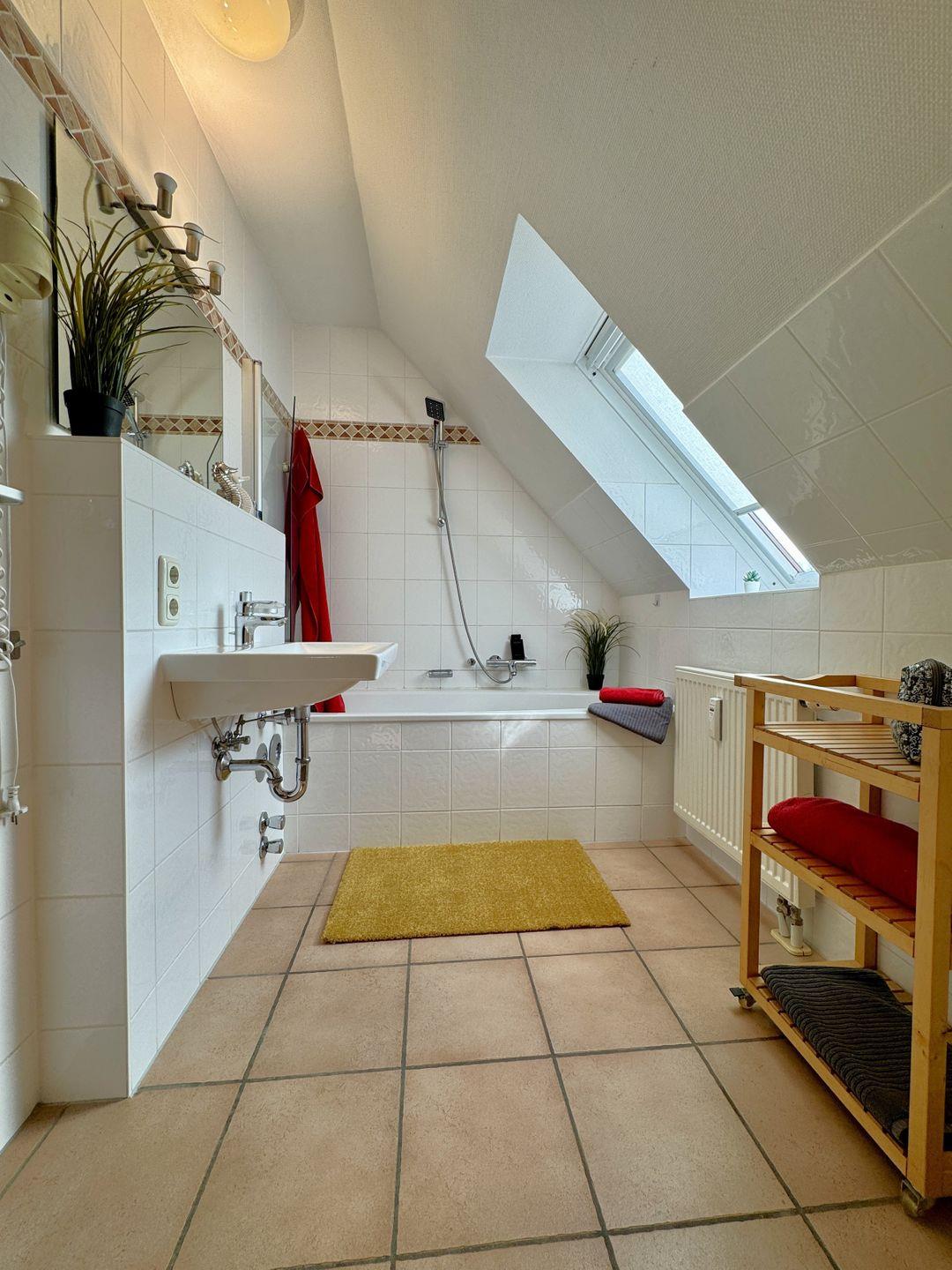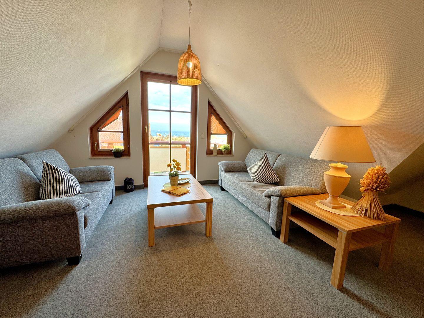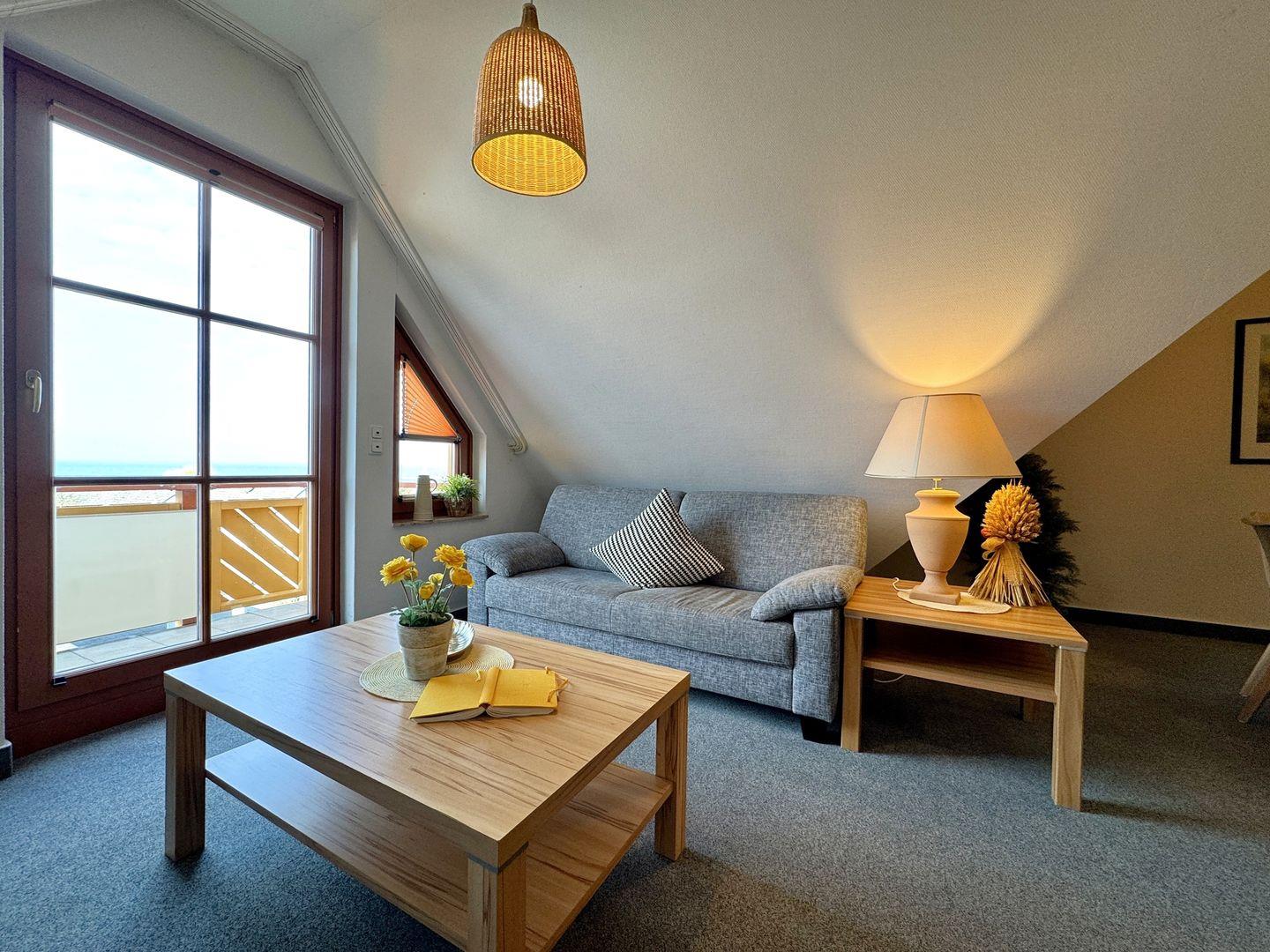 Ein gemütliches Dachgeschoss-Appartement für bis zu 5 Personen mit einem Westbalkon und Ostseeblick. Das Appartement Verfügt über ein Wohnzimmer mit integrierter Küchenzeile, ein Schlafzimmer mit einem Doppelbett und ein weiteres Schlafzimmer mit einem Doppelbett und eine zusätzliche Schlafcouch. Das Badezimmer ist mit einer Badewanne und WC ausgestattet. Haustiere und Rauchen sind nicht gestattet, jedoch gibt es WLAN für einen bequemen Internetzugang während des Aufenthalts. Im Gemeinschaftsraum in der Tiefgarage stehen Waschmaschine und Trockner gegen Gebühr zur Verfügung. Ideal für einen entspannten Aufenthalt! Diesem Appartement ist der Tiefgaragenstellplatz Nr. 09 zugeordnet.