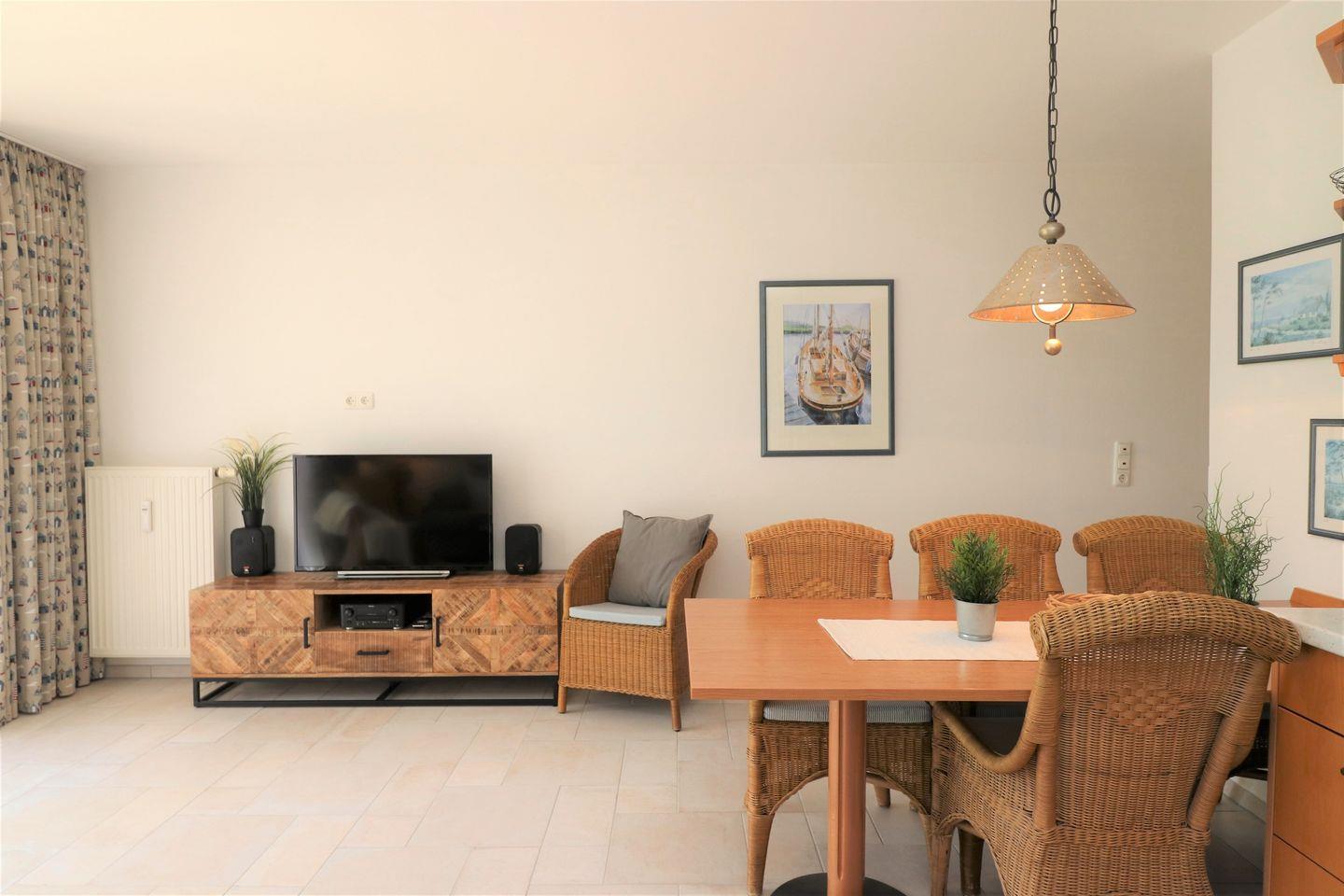 Ein geräumiges Erdgeschoss-Appartement für bis zu 4 Personen mit einer Terrasse nach Süden ausgerichtet. Das Appartement verfügt über ein Wohnzimmer mit integrierter Küchenzeile und ein Schlafzimmer mit einem gemütlichem Doppelbett, sowie ein Schlafzimmer mit Doppelstockbett. Das Badezimmer ist mit einer Badewanne und WC ausgestattet. Haustiere und Rauchen sind nicht gestattet, jedoch gibt es WLAN für einen bequemen Internetzugang während des Aufenthalts. Im Gemeinschaftsraum in der Tiefgarage stehen Waschmaschine und Trockner gegen Gebühr zur Verfügung. Ideal für einen entspannten Aufenthalt! Diesem Appartement ist einem Tiefgaragenstellplatz Nr. 53 zugeordnet.