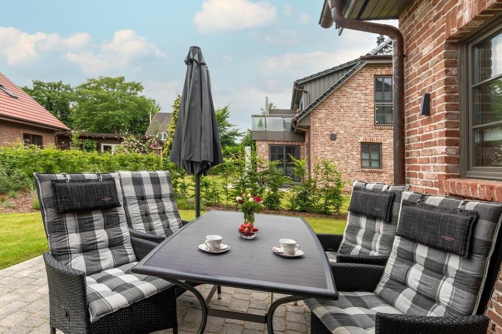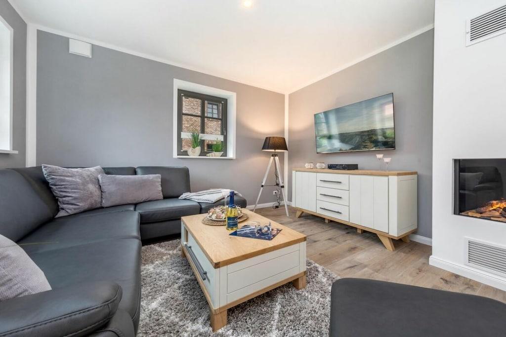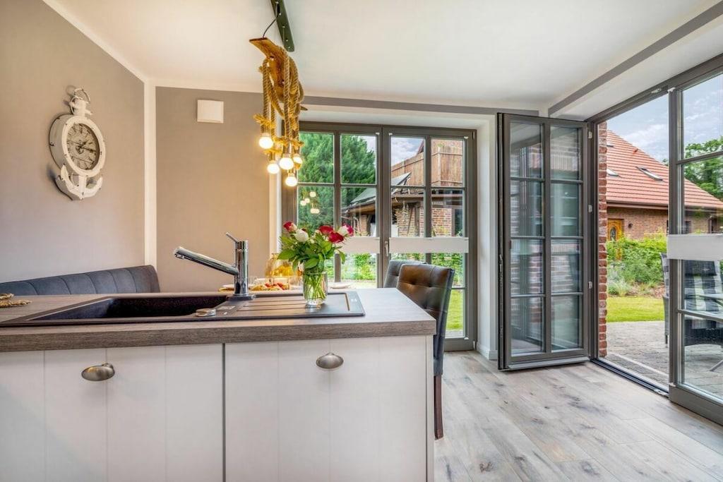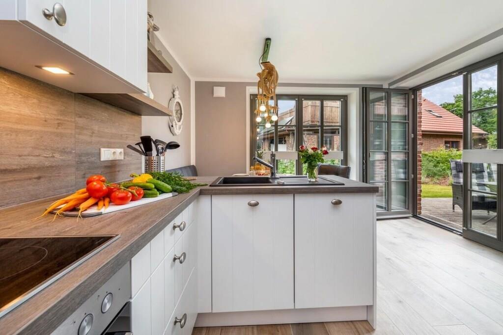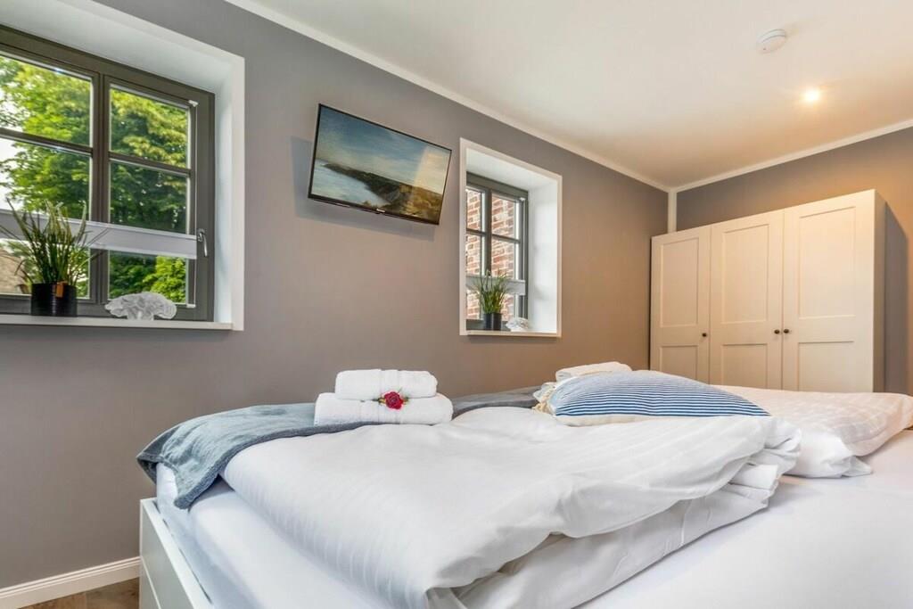 , , Stue(, Fjernsyn, pejs, radio), Køkken(spisebord, kogeplade, elkedel, brødrister, kaffemaskine, ovn, opvaskemaskine , køleskab, fryser), soveværelse(enkeltseng, enkeltseng, dobbeltseng), soveværelse(enkeltseng, enkeltseng, dobbeltseng), badeværelse(, toilet, bruser, håndvask, føntørrer), Internetadgang, varme, terrasse(, havemøbler), parkering, strygebræt, strygejern, tørreskab