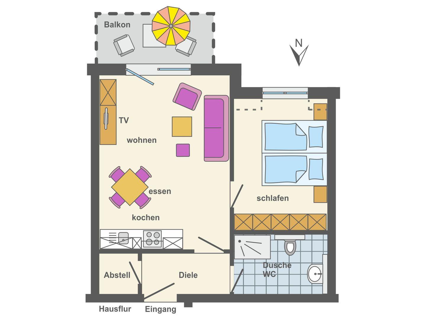 Sonnenschirm und Mückenschutzgitter sind vorhanden. WLAN steht über einen eigenen Anschluss kostenlos zur Verfügung. Zur Wohnung gehört ein Parkplatz im Außenbereich sowie ein separater Fahrradschuppen. Das Rauchen und das Mitführen von Haustieren ist leider nicht gestattet.