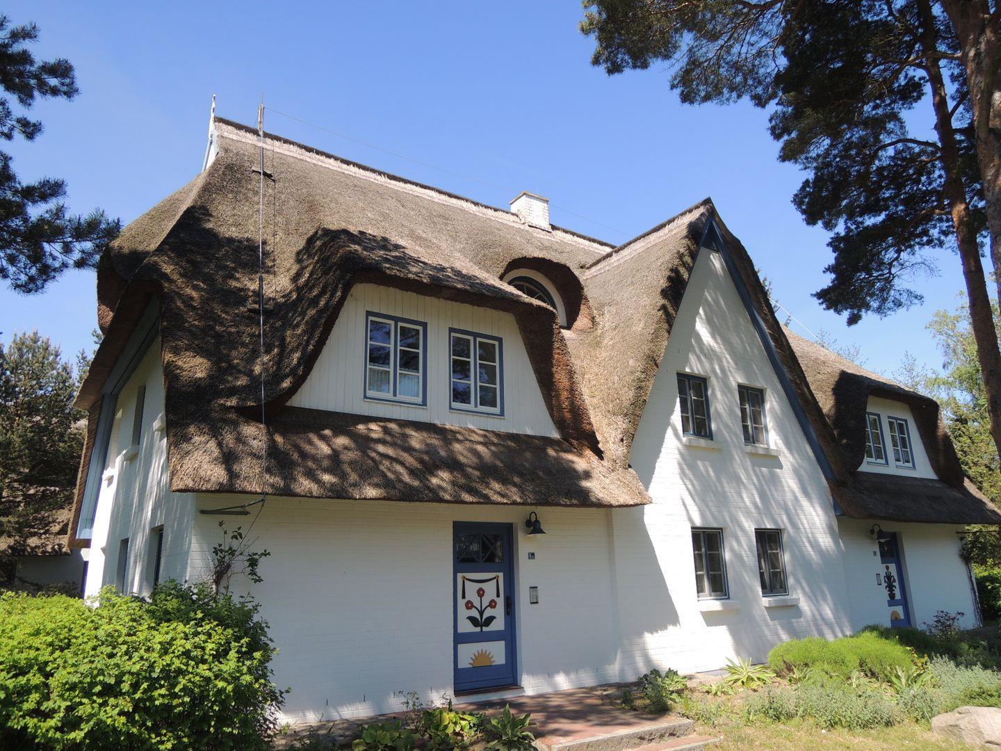 Die reetgedeckte Ferienanlage liegt etwas außerhalb, direkt hinter dem Ostseedeich. Die 41qm große Eckwohnung wird für max. 2 Personen vermietet. Die Erdgeschosswohnung hat einen Wohn-Essbereich mit einer anschließenden Westterrasse. Im Schlafzimmer befindet sich ein Doppelbett (1,80 x 2,00 m) und das Bad ist mit Dusche und WC ausgestattet. Die großzügige Terrasse mit Blick in den westlichen Garten lädt zum Entspannen und Verweilen ein.