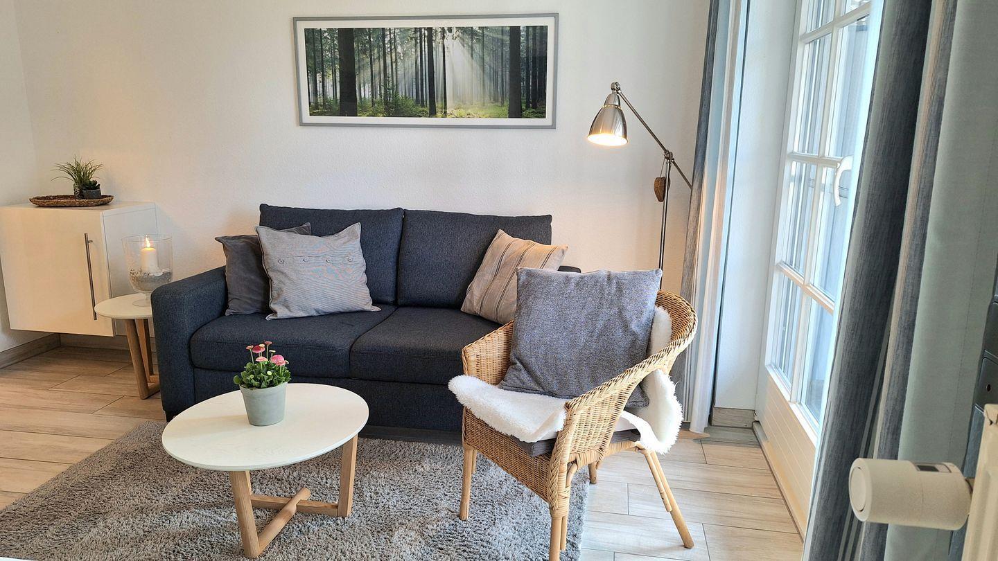 Die reetgedeckte Ferienanlage liegt etwas außerhalb des belebten Zentrums von Zingst, direkt hinter dem Deich, am feinsandigen Ostseestrand und am Anfang des malerischen Osterwaldes mit seinem Moor. Die 41 m2 große Wohnung wird für max. 2 Personen vermietet. Die moderne und voll ausgestattete Küche, mit Essbereich, ist in den Wohnraum integriert. Von hier aus gelangen Sie auch auf die Westterrasse. Das Schlafzimmer ist mit einem Ehebett und das Bad mit bodengleicher Dusche, WC und Waschmaschine ausgestattet. Zur Wohnung gehört ein kostenfreier PKW-Stellplatz, direkt vor dem Haus. Die Wohnung ist optimaler Ausgangspunkt für abwechslungsreiche Fahrradtouren in einzigartiger Naturlandschaft, in der Region Fischland-Darß-Zingst.