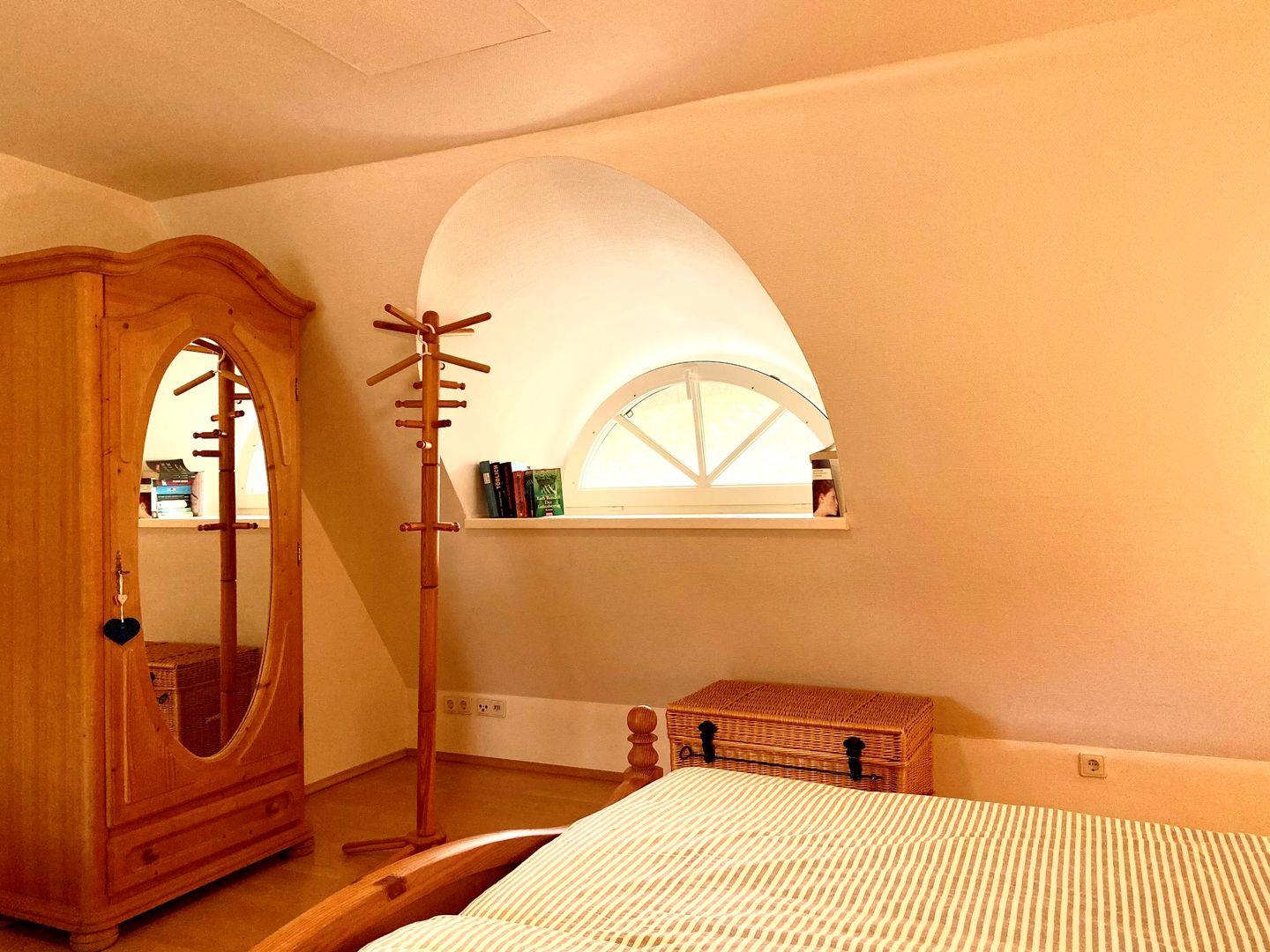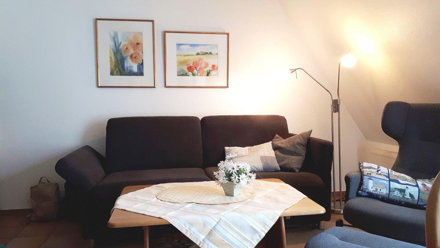 Die reetgedeckte Ferienanlage liegt etwas außerhalb von Zingst, direkt hinter dem Ostseedeich. Die 50qm große Obergeschoßwohnung wird für maximal 2 Erwachsene und 1 Kind vermietet. Auf der Wohnebene der Maisonettwohnung befinden sich der Wohnraum mit der abgegrenzten hellen Küche sowie der Westbalkon und das Bad im Dusche und Toilette. Im Obergeschoß befindet sich das Schlafzimmer mit einem Ehebett.