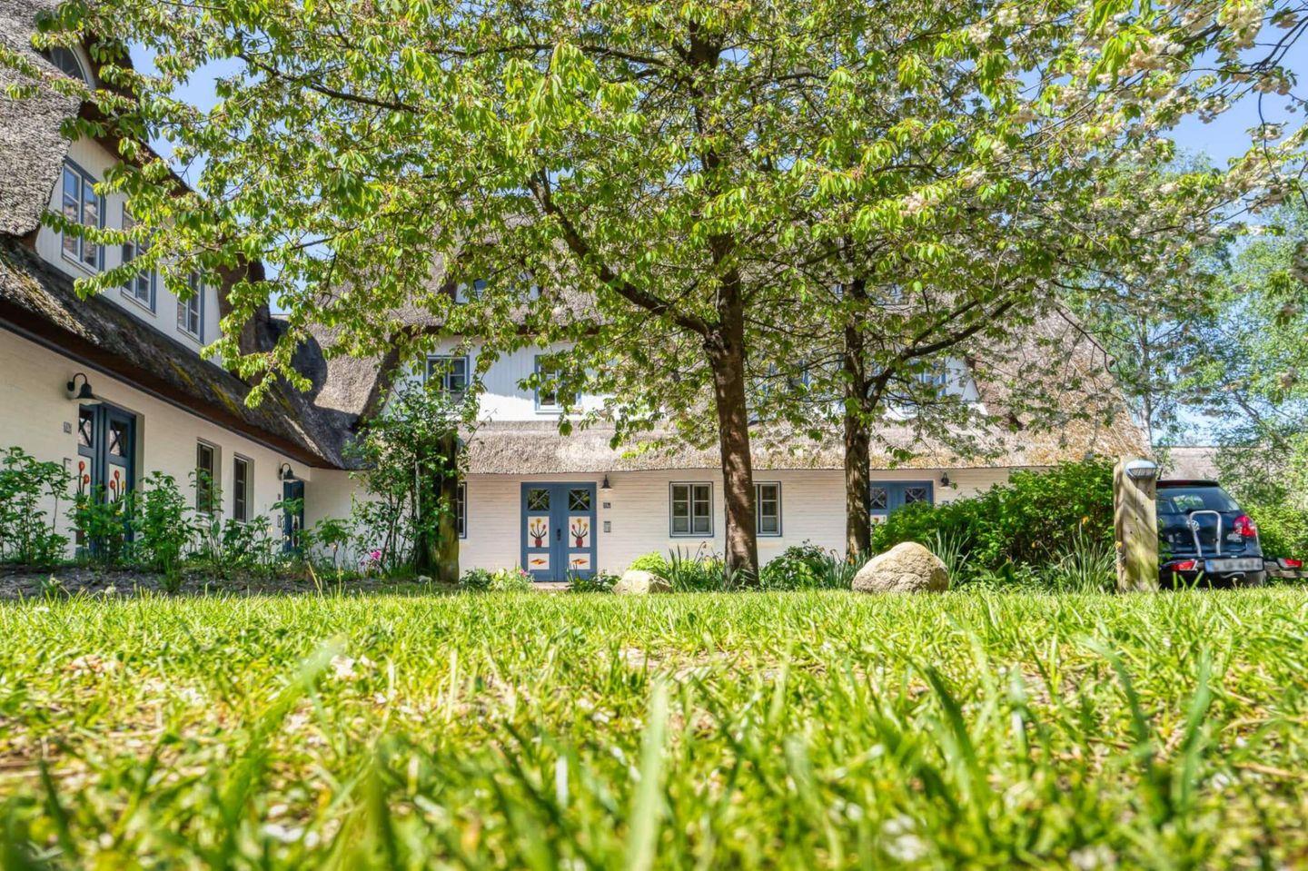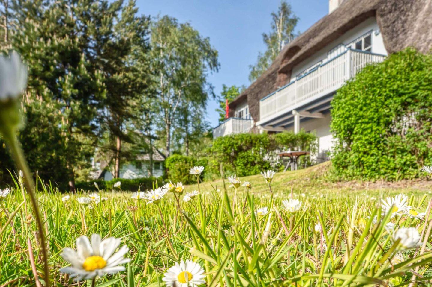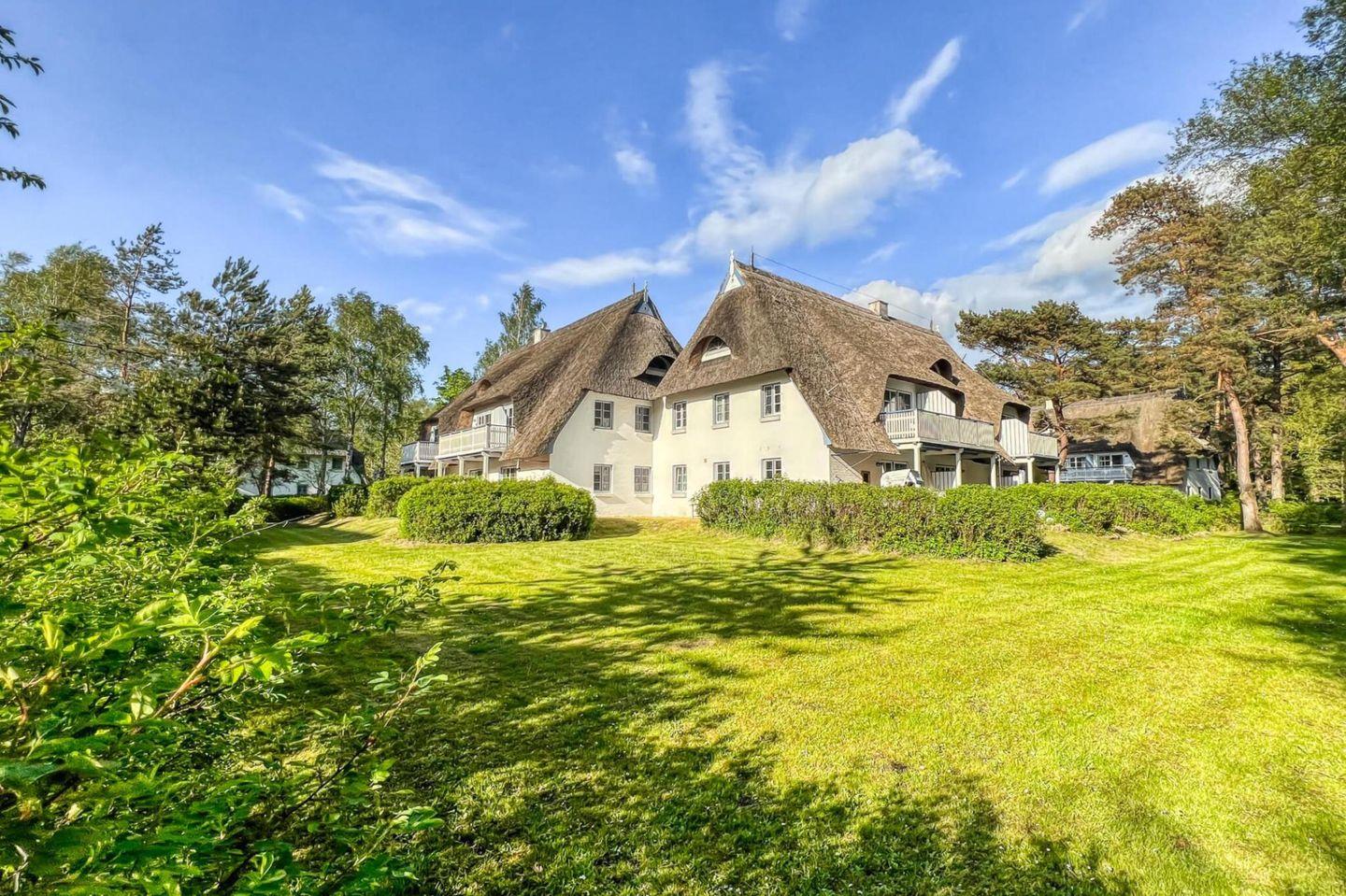 Die reetgedeckte Ferienanlage liegt etwas außerhalb, direkt hinter dem Ostseedeich.