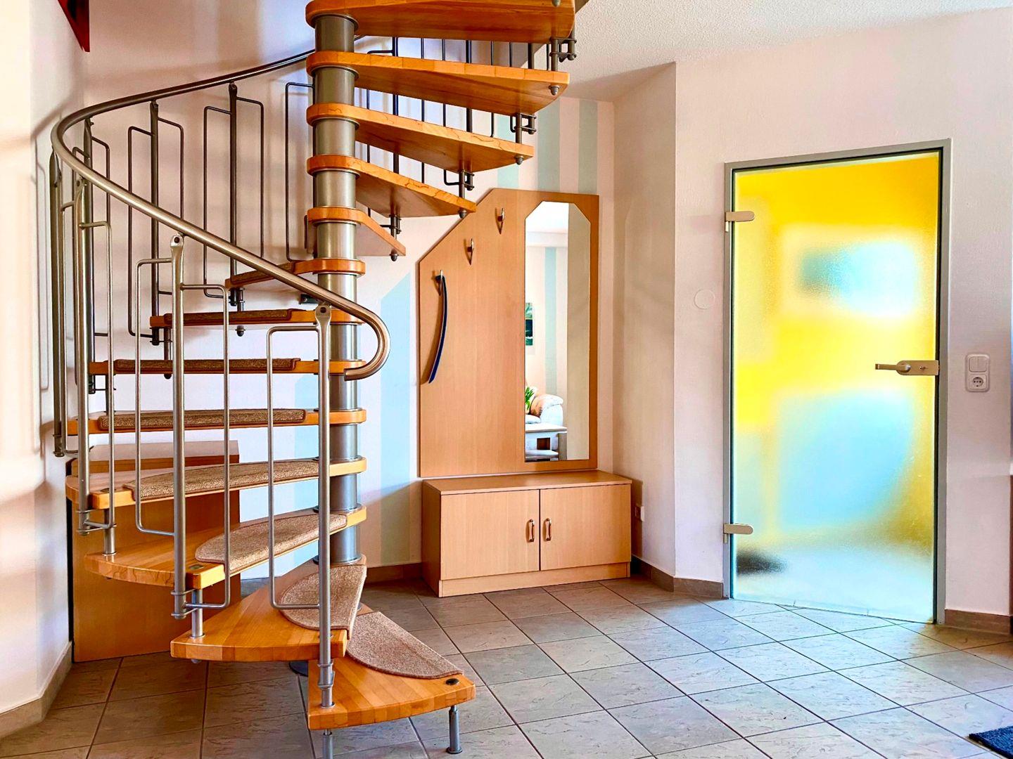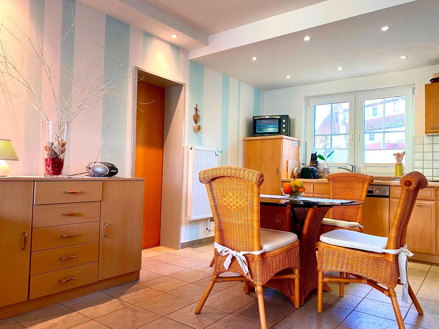 Diese 71 qm große Doppelhaushälfte erstreckt sich über 2 Etagen und bietet Platz für maximal 2 Erwachsene + 2 Kinder. Das Wohnzimmer befindet sich im Erdgeschoss und geht in den Essbereich mit Küchenzeile über. Hier ist auch das Badezimmer mit Dusche zu finden. In der 1. Etage liegen zwei Schlafzimmer, eines mit Doppelbett und das andere mit zwei Einzelbetten. Das Gäste-WC ist ebenfalls hier untergebracht. Das Frühstück können Sie auf der Ost-Terrasse genießen. In 2 Minuten sind Sie zu Fuß am feinsandigen Ostseestrand.