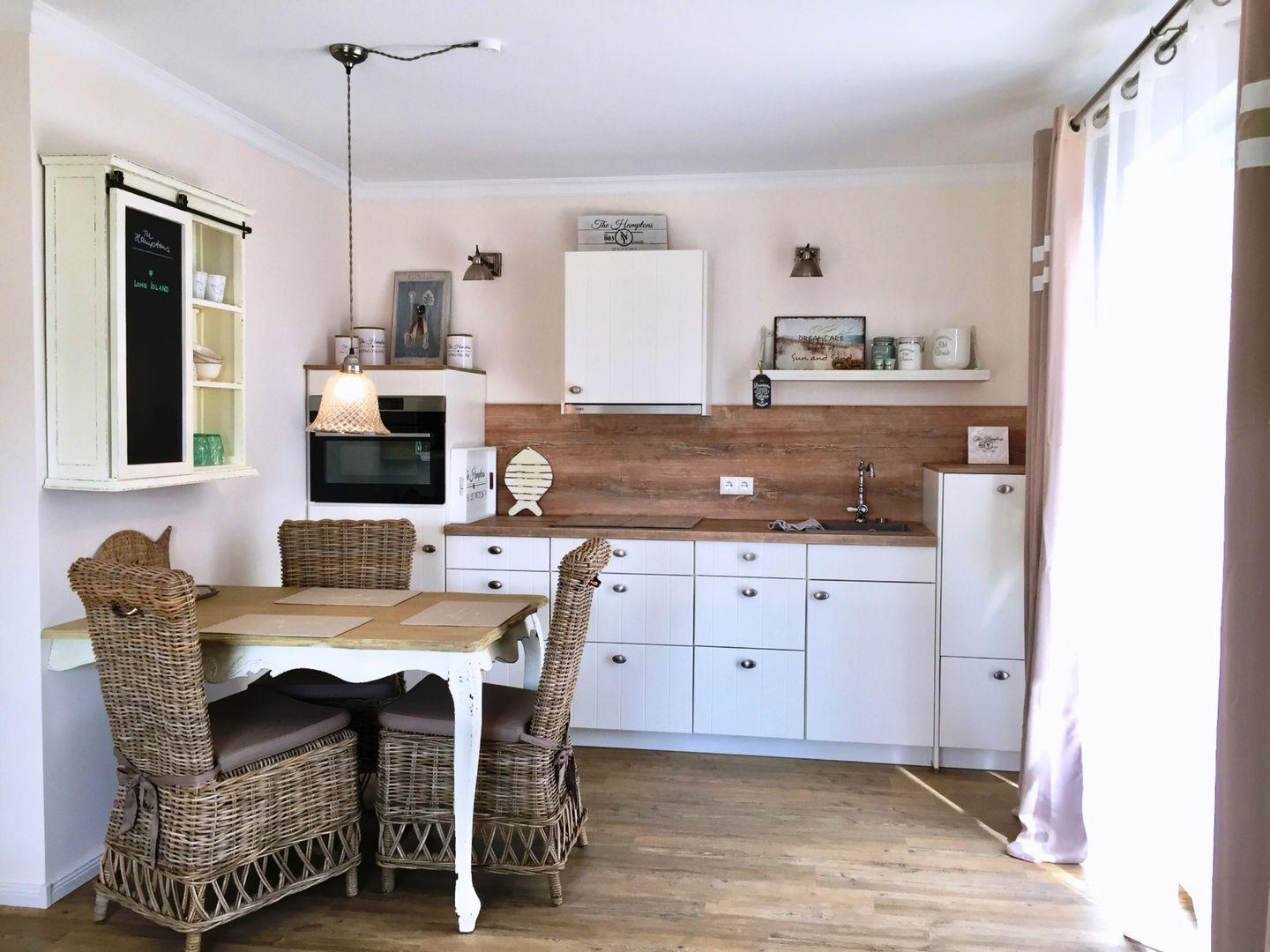 Die moderne Küchenzeile ist mit einem vierfachem Cerankochfeld, einem Backofen, einem Geschirrspüler, einer Mikrowelle sowie einem Kühlschrank mit Gefrierfach voll ausgestattet. Mit dem vorhandenen Toaster, der Kaffeemaschine und dem Wasserkocher finden Sie hier die alltäglichen Helfer für ein schönes Frühstück.