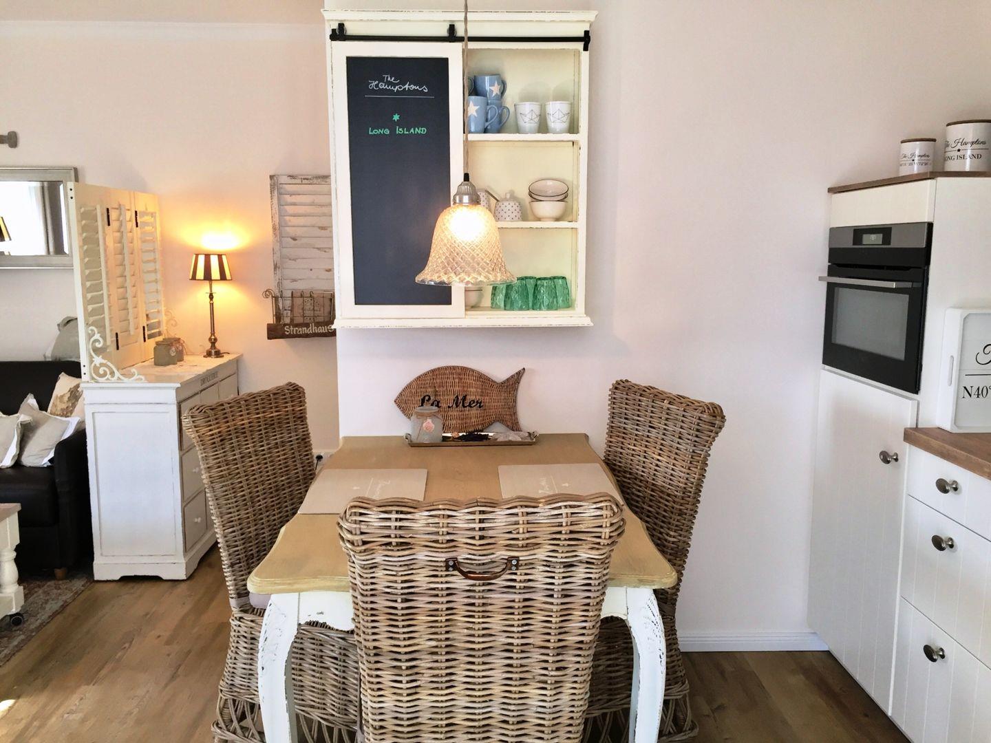 Im Wohnbereich der Ferienwohnung laden eine bequeme Couchgarnitur, eine Stereoanlage und ein Flatscreen-TV zu gemütlichen Abenden ein. Den WLAN-Zugang des Hauses können Sie kostenlos nutzen. Der integrierte Essbereich verspricht Ihnen entspannte Mahlzeiten.