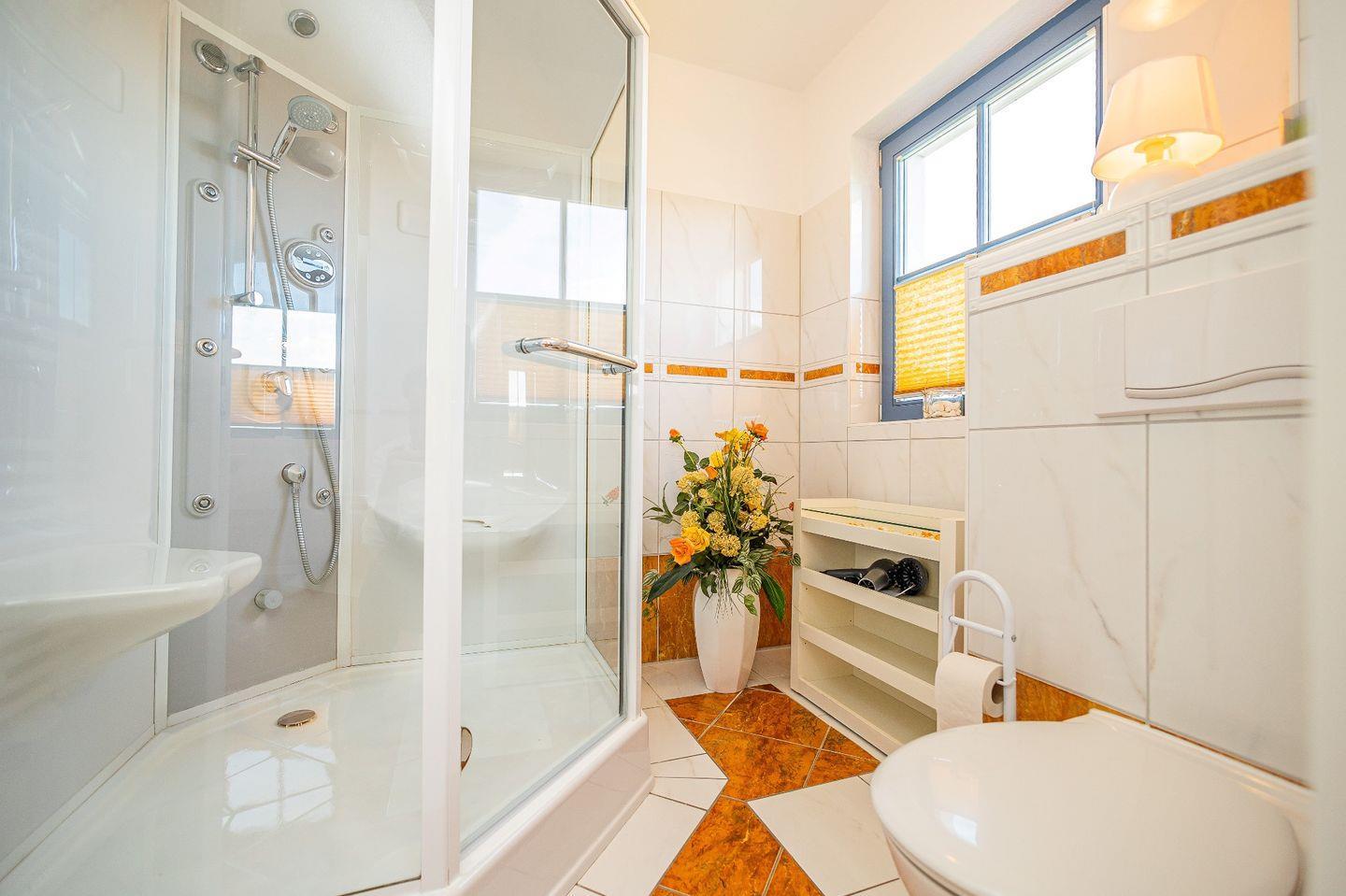 Ein Haus zum Erholen für Groß und Klein. Die Doppelhaushälfte liegt in einer ruhigen Seitenstraße. Es stehen Ihnen 2 PKW Stellplätze auf dem Grundstück zur Verfügung. Die 3 Schlafzimmer (1 großes Schlafzimmer mit Doppelbett (180x200) ein kleineres Schlafzimmer mit Doppelbett (140x200), 1 Schlafzimmer mit zwei Einzelbetten(offnene Galerie), bieten Platz für insgesamt 6 Personen. Im Erdgeschoss befindet sich der großzügige kombinierte Wohn- und Essbereich mit Küche. Genießen Sie Ihre Zeit auf der Terrasse oder im Strandkorb im Garten. Kinderhochstuhl und Kinderreisebett ergänzen die Ausstattung für Familien mit kleineren Kindern. Die Fenster sind mit Insektenschutzgitter und Rollläden ausgestattet. Genießen Sie eine erholsame Zeit in Zingst.