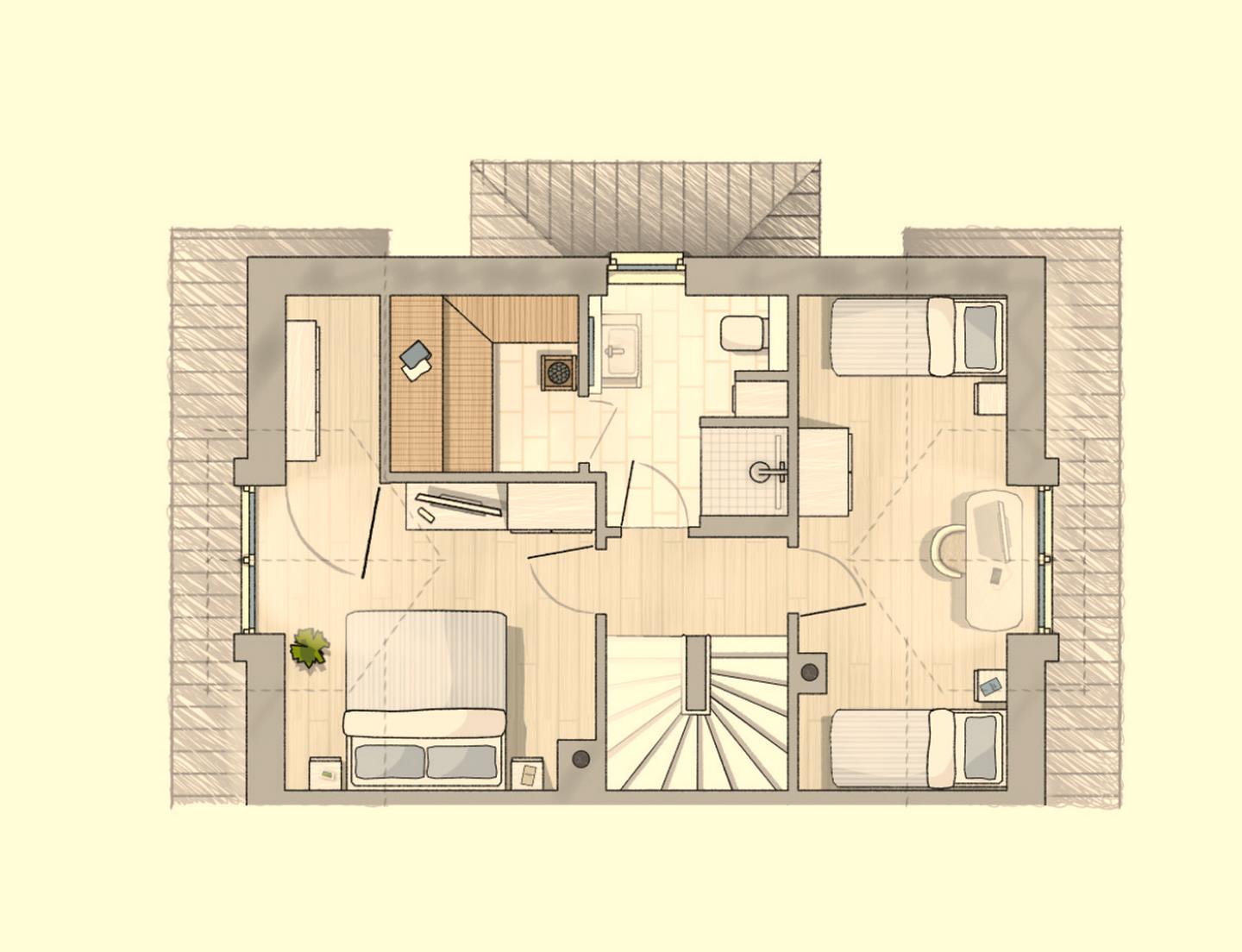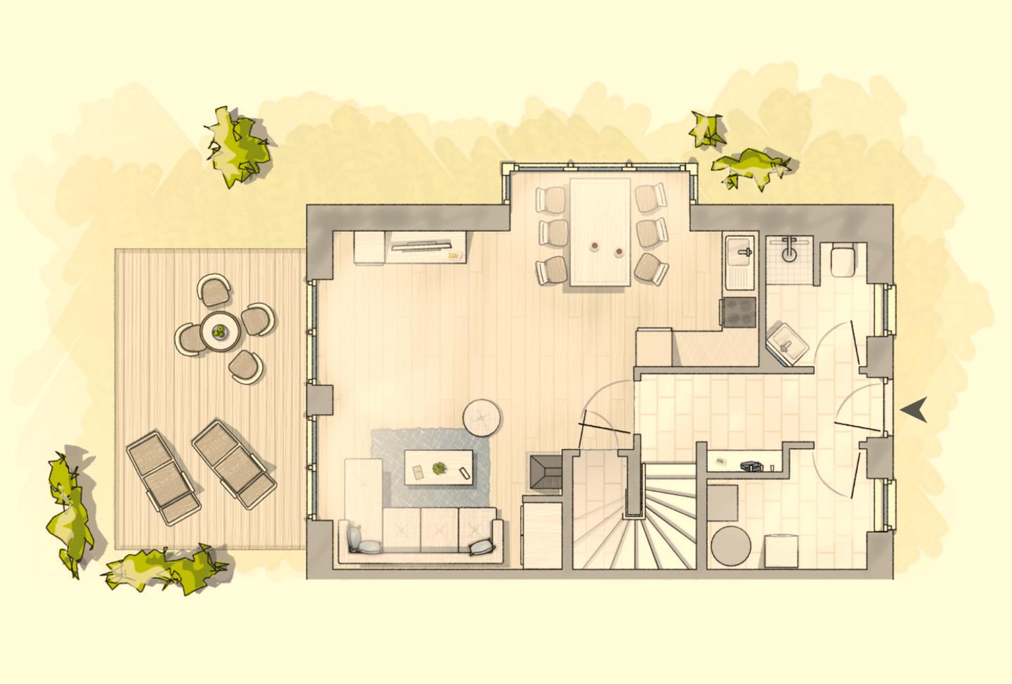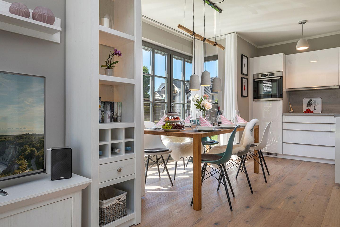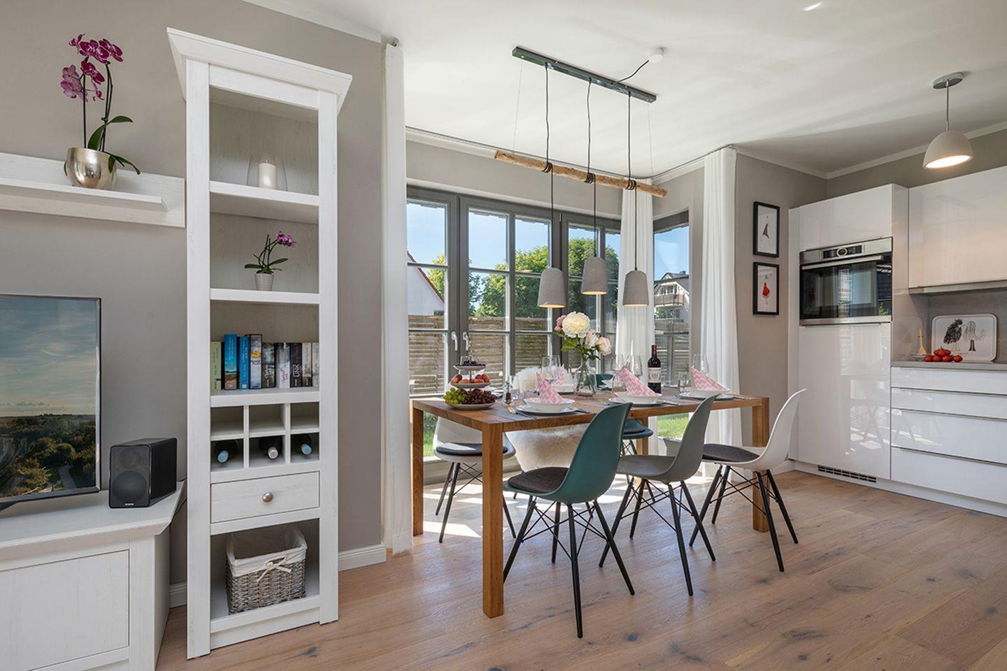 Moin :-) Ganz bewusst haben wir für unser Feriendomizil den Namen „Kleine Flucht“ gewählt. Bei uns können Sie den Alltag hinter sich lassen und sich gleichzeitig wie zu Hause fühlen. Wir haben unser Ferienhaus so gestaltet, wie wir selbst gerne Urlaub machen: mit höchsten Ansprüchen und viel Liebe zum Detail. So ist ein stimmiges Ambiente für allzeit entspannte Urlaubstage entstanden. An sonnigen Frühlings- und Sommertagen bietet die „Kleine Flucht“ eine frische, helle Umgebung, Garten und Terrasse laden zum Verweilen ein. In stürmischen Herbstzeiten und fröhlich-frostigen Winterwelten ist sie Ihnen mit Gaskamin und Sauna ein kuscheliges Heim. Nicht zuletzt wegen der warmen Holzböden und der achtsam ausgewählten Einrichtung, die für Gemütlichkeit und ein angenehmes Raumklima sorgen. Für zwei Urlauber ist unser Ferienhaus großzügig geschnitten, bietet aber auch Familien oder Freunden mit bis zu 4 Erwachsenen + 2 Kindern genug Raum. Dann erlauben die beiden Badezimmer reibungslose morgendliche Abläufe, der Kaffeevollautomat tut sein Übriges für einen guten Start in den Tag. Dieser kann je nach Jahreszeit mit dem Gasgrill auf der Terrasse oder im Wohnzimmer vor dem Gaskamin stimmig beschlossen werden, bevor die gemütlichen Boxspringbetten erholsamen Schlaf bringen. Ganzjährig lockt die Sauna, Ihre Kinder haben im Spitzboden ein eigenes Reich. Zu Ihrem Urlaubsrefugium gehören ein kleiner Garten und zwei Stellplätze. Eigentlich bräuchten Sie also gar nicht aus dem Haus zu gehen – würden nicht das schöne Städtchen Zingst und die herrliche Natur locken. Empfehlungen geben wir Ihnen neben vielen anderen interessanten Informationen in unserer Hausmappe, die für Sie bereitliegt. Alles in Zingst erreichen Sie innerhalb weniger Minuten. Dennoch ist es herrlich ruhig in der „Kleinen Flucht“ – sie liegt zentral, aber ruhig in einer Anliegerstraße mit 30er-Zone.
