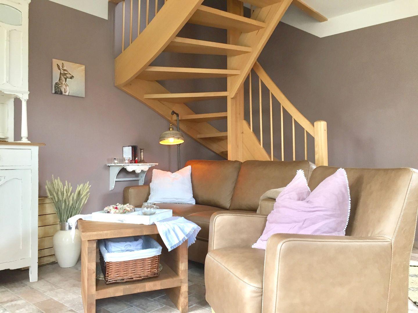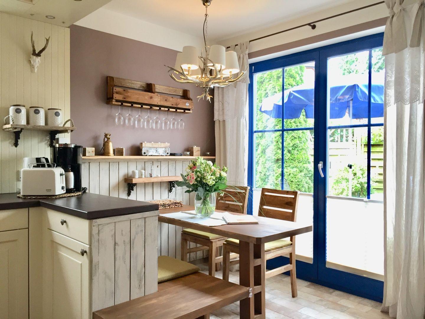 Auf 68qm bewohnen Sie ein gemütliches Wohnzimmer, zwei liebevoll eingerichtete Schlafzimmer und zwei Duschbäder. Die großzügige Landhausküche lädt zum gemeinsamen Kochen ein. Ein abgeschlossener Garten mit zwei Terrassen zum Wohlfühlen und Grillen komplettiert das Ferienhaus.