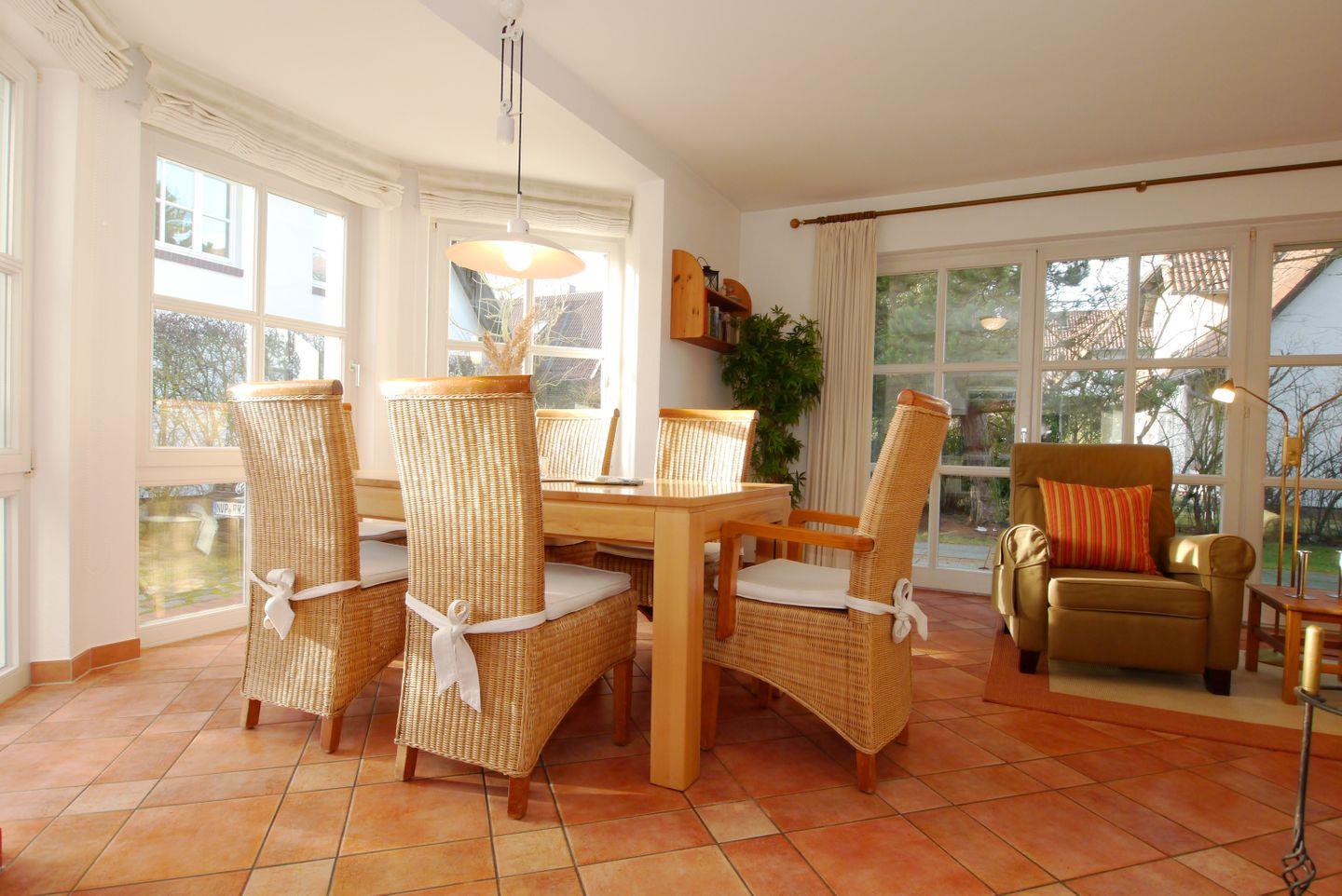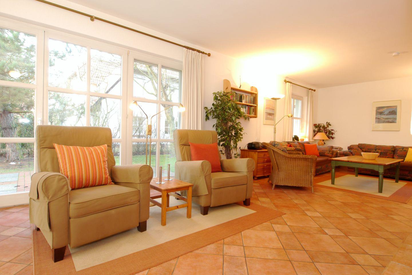 Das Einzel stehende Haus liegt am Ende einer Sackgasse ruhig und trotzdem zentral. Die Dinge des täglichen Bedarfs sind ebenso schnell erreicht, wie der Strand oder die Fußgängerzone. Das 150qm große Haus wird für bis 6 Personen vermietet. Im Erdgeschoss sind der große Wohn-Essbereich mit Kamin, eines der drei Bäder mit Dusche und WC, sowie ein Tischtennisraum. Im Obergeschoss sind die beiden weiteren Badezimmer einmal mit Dusche und einmal Wanne und WC sowie drei Schlafzimmer alle mit Ehebett ausgestattet. Das Haus hat eine Westterrasse und einen Südbalkon.