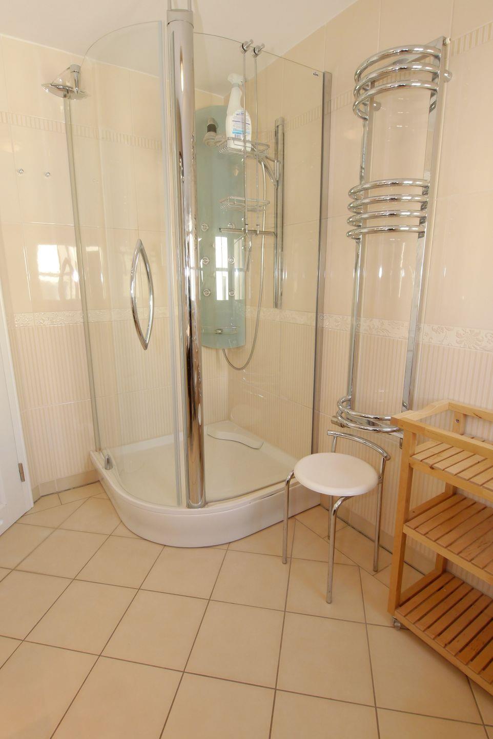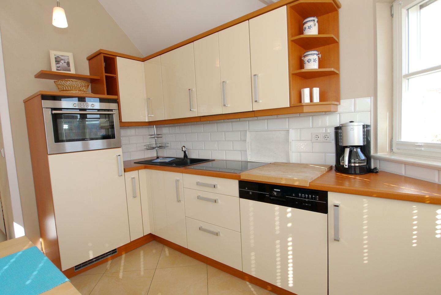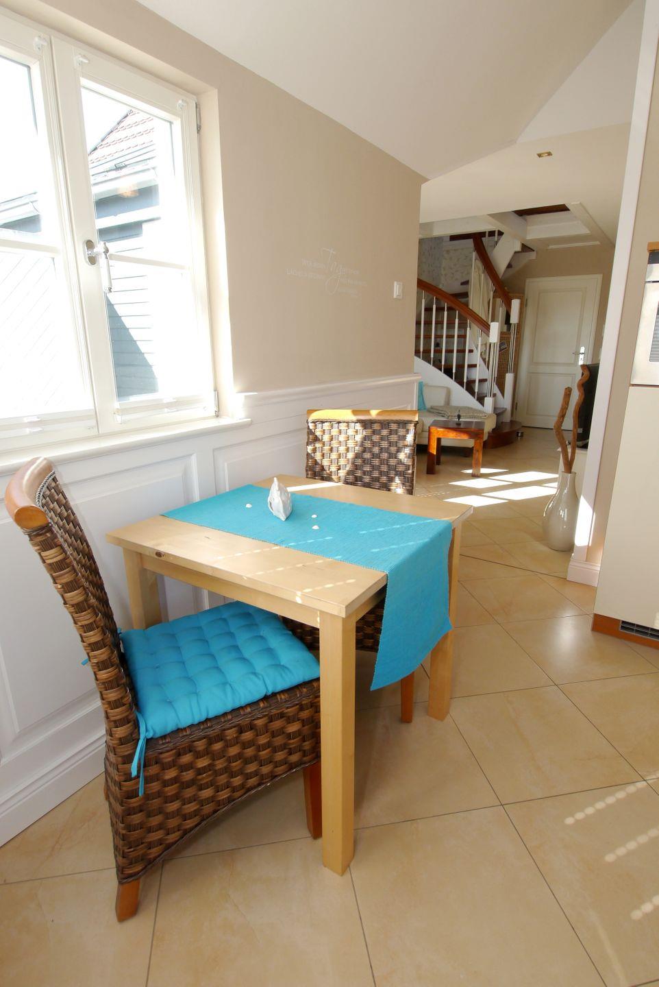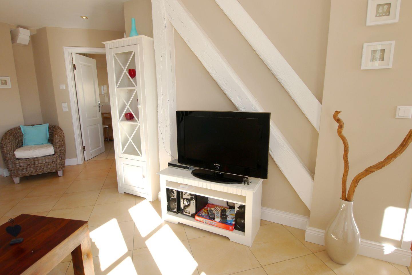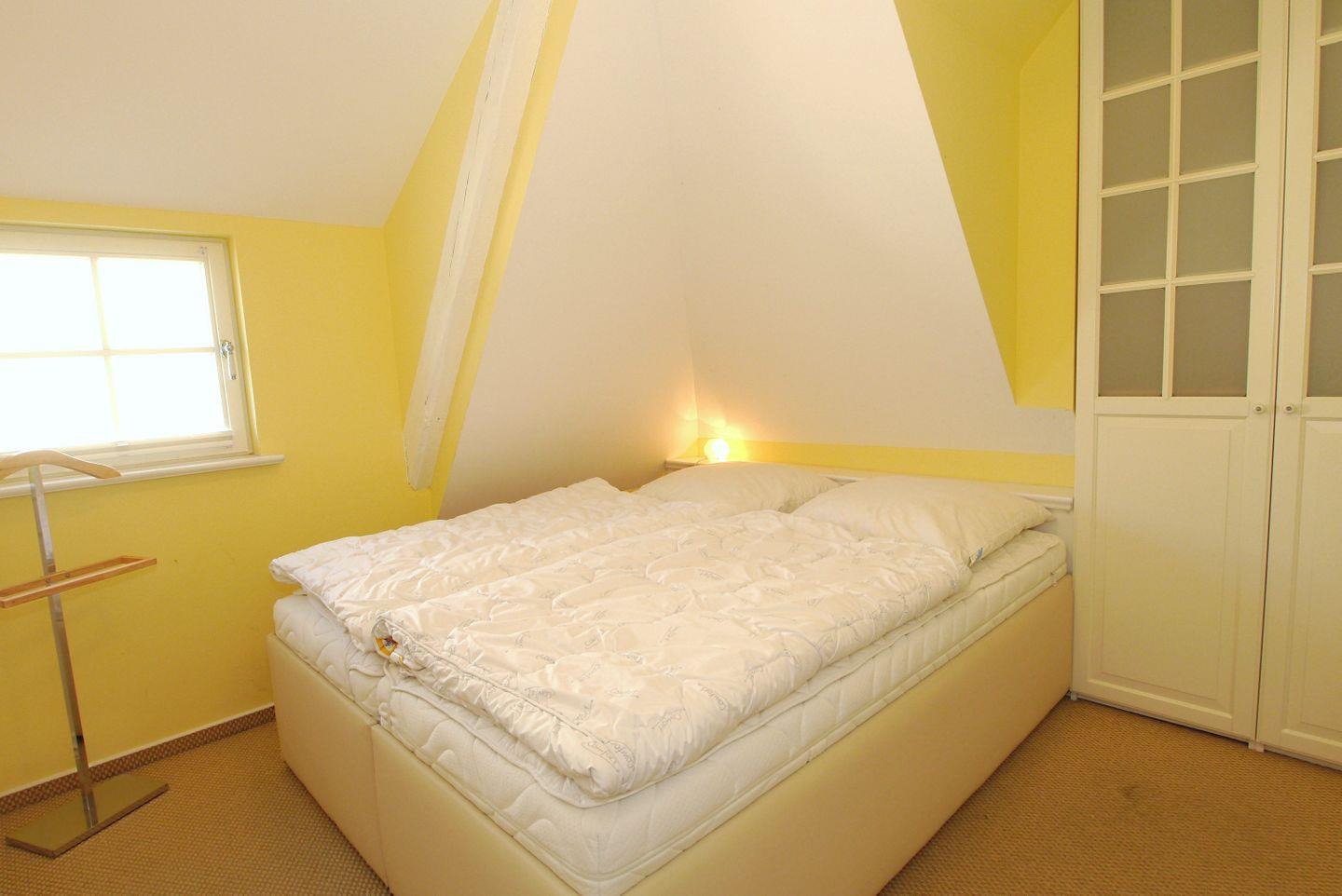 Die 54 qm große Obergeschosswohnung liegt in der 1. Etage und kann mit bis zu 2 Personen angemietet werden. Das Wohnzimmer mit Zugang zur großen Dachterrasse geht direkt in den Küchenbereich mit kleiner Essecke über. Das Schlafzimmer ist mit einem Doppelbett ausgestattet und im Badezimmer finden sich eine Glasdusche und das WC. Vom Wohnbereich führt eine Treppe auf die offene Galerie, hier befindet sich ein kleiner Relaxbereich mit einer Liege. Ein Fahrradschuppen und eine Waschmaschine ergänzen die Ausstattung.