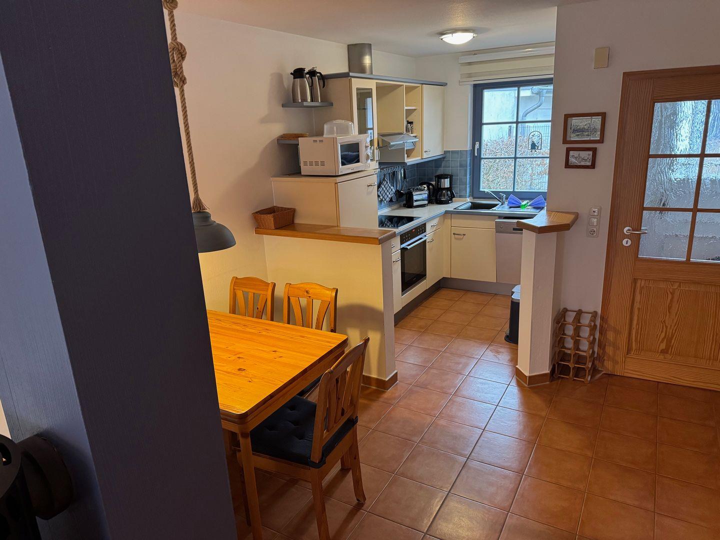 Im Erdgeschoss befinden sich der Wohn-Essbereich mit integrierter Küche und der Zugang zur Terrasse. Im 1. Obergeschoss sind ein Schlafzimmer mit Ehebett und das Bad mit Eckbadewanne, Dusche und WC. Im Dachgeschoss ist auf der offenen Galerie ein weiteres Schlafzimmer mit 2 Einzelbetten. Das Haus ist mit einer Waschmaschine ausgestattet. Ihre Fahrräder können Sie im dazugehörigen Fahrradschuppen abstellen.