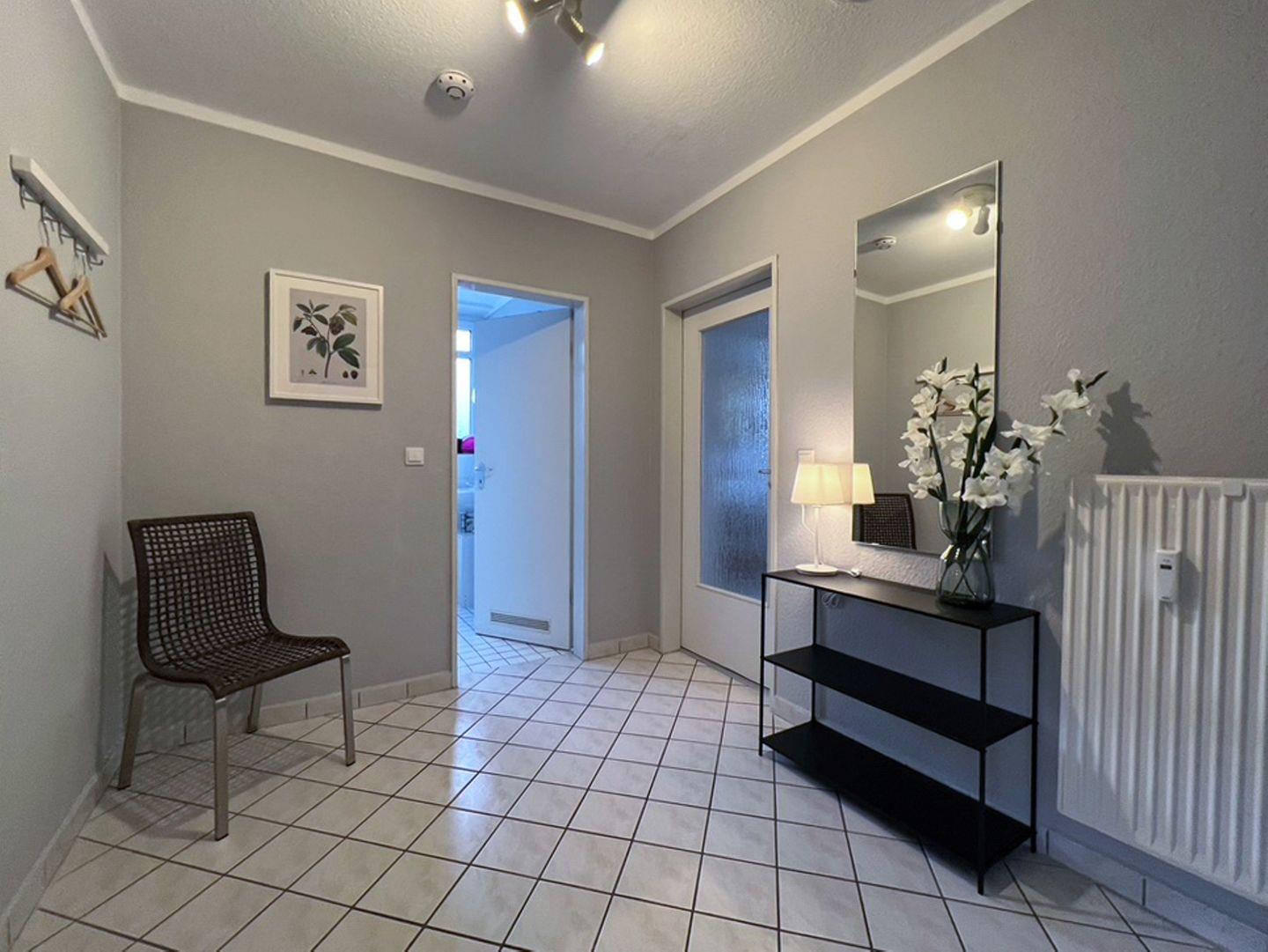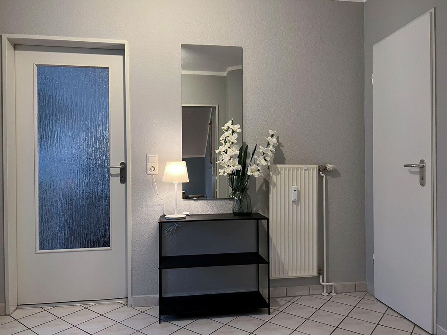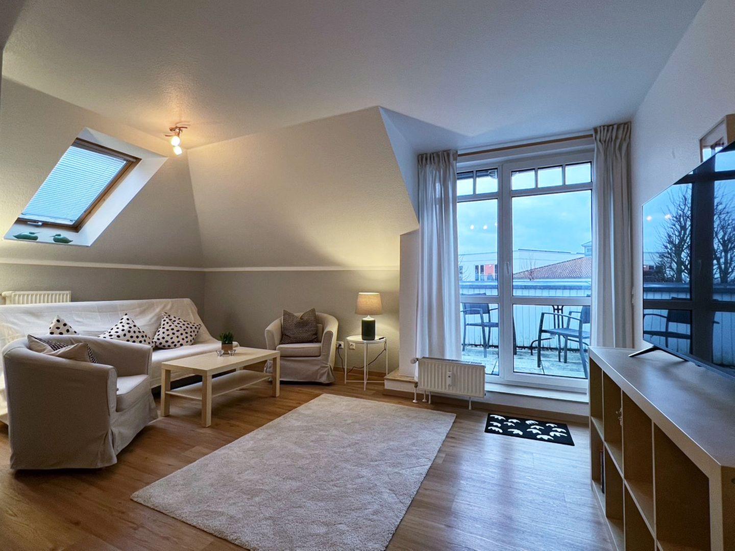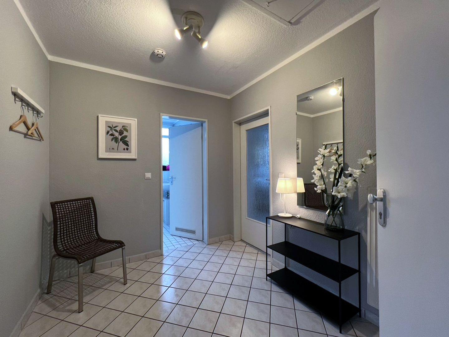 Die 52 qm große Wohnung liegt im 2. Obergeschoss und wird für bis zu 2 Erwachsene und 2 Kinder vermietet. In den Wohnbereich gelangen Sie auf den möblierten Südbalkon. Die separate Küche schließt sich direkt an das Wohnzimmer an. Das Schlafzimmer ist mit einem Doppelbett und einem Fernseher ausgestattet, im Wohnzimmer steht eine Schlafcouch für bis zu 2 Personen zur Verfügung. Das Badezimmer ist mit Dusche und WC versehen. Ein Gemeinschaftsschuppen steht für Fahrräder zur Verfügung.