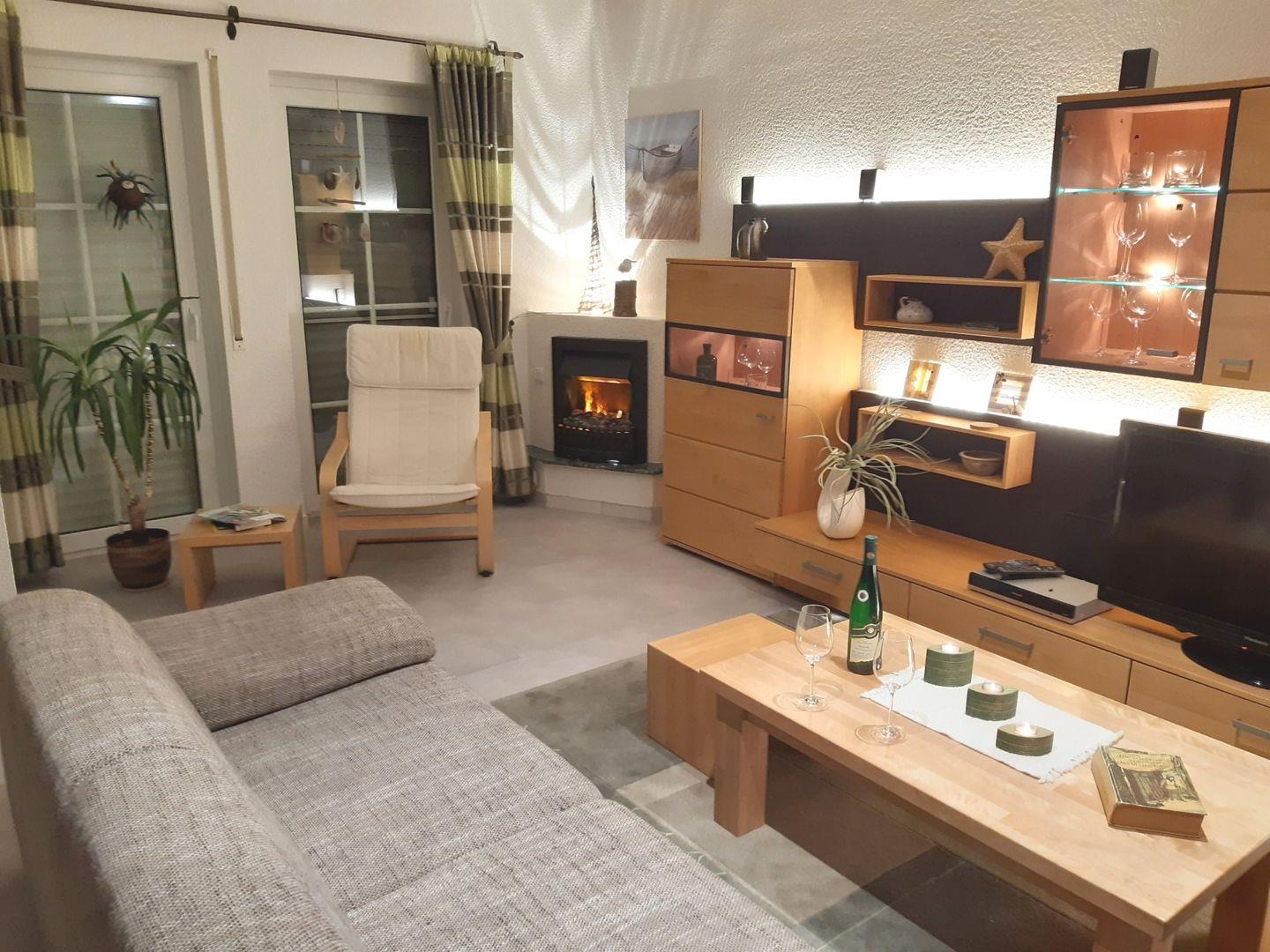 Diese 84 m² große Doppelhaushälfte kann mit bis zu 4 Erwachsenen und 1 Kind angemietet werden. Im Erdgeschoss ist das Wohnzimmer mit einem Elektrokamin und Essecke zu finden, von hier erfolgt auch der Zugang zur Südterrasse. Das Haus verfügt über eine separate Küche in der auch die Waschmaschine zu finden ist und ein Badezimmer mit Badewanne und Dusche. Die beiden Schlafzimmer liegen im Obergeschoss, eines ist mit einem Doppelbett und das andere mit drei Einzelbetten ausgestattet. Ein Internetzugang über WLAN ist möglich.