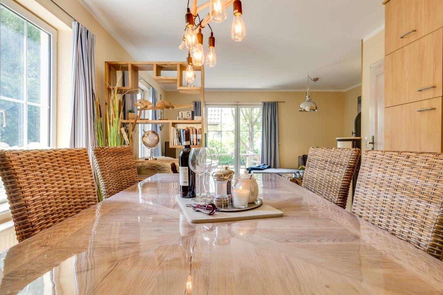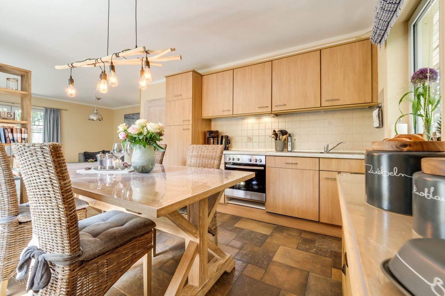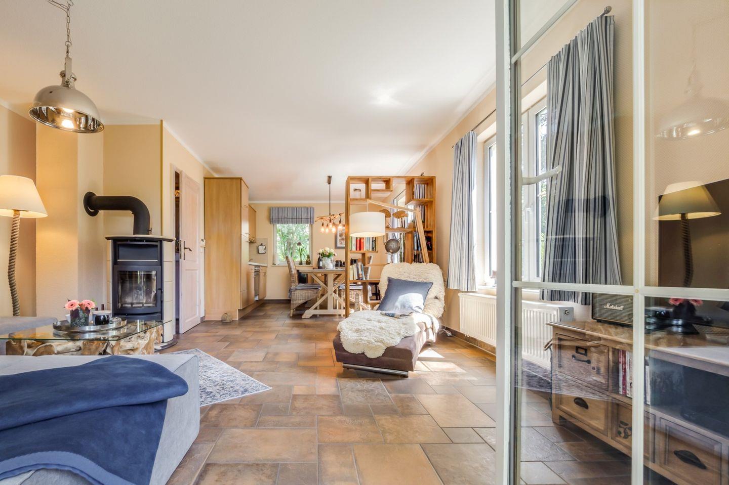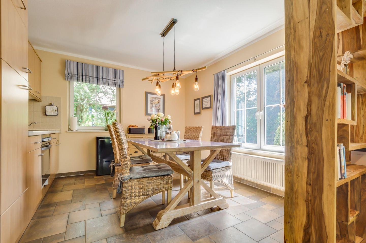 Sehr ruhiges und strandnahes Ferienhaus mit 120 qm Wohnfläche. Das Haus wird für max. 4 Personen vermietet. Im Erdgeschoss sind der Wohnraum mit Essecke und integrierte Küche, ein Schlafzimmer mit Ehebett und ein Bad mit Dusche und WC. Auf der oberen Etage ist ein weiteres Wohnzimmer, ein zweites Schlafzimmer mit Ehebett und ebenfalls ein Bad mit Dusche und WC. Das Haus liegt in einem großen Garten mit Südterrasse. Ein Carport steht Ihnen ebenfalls zur Verfügung. Kaminofen, Strandkorb, Waschmaschine und Fliegengitter sind weitere Annehmlichkeiten des Objektes.