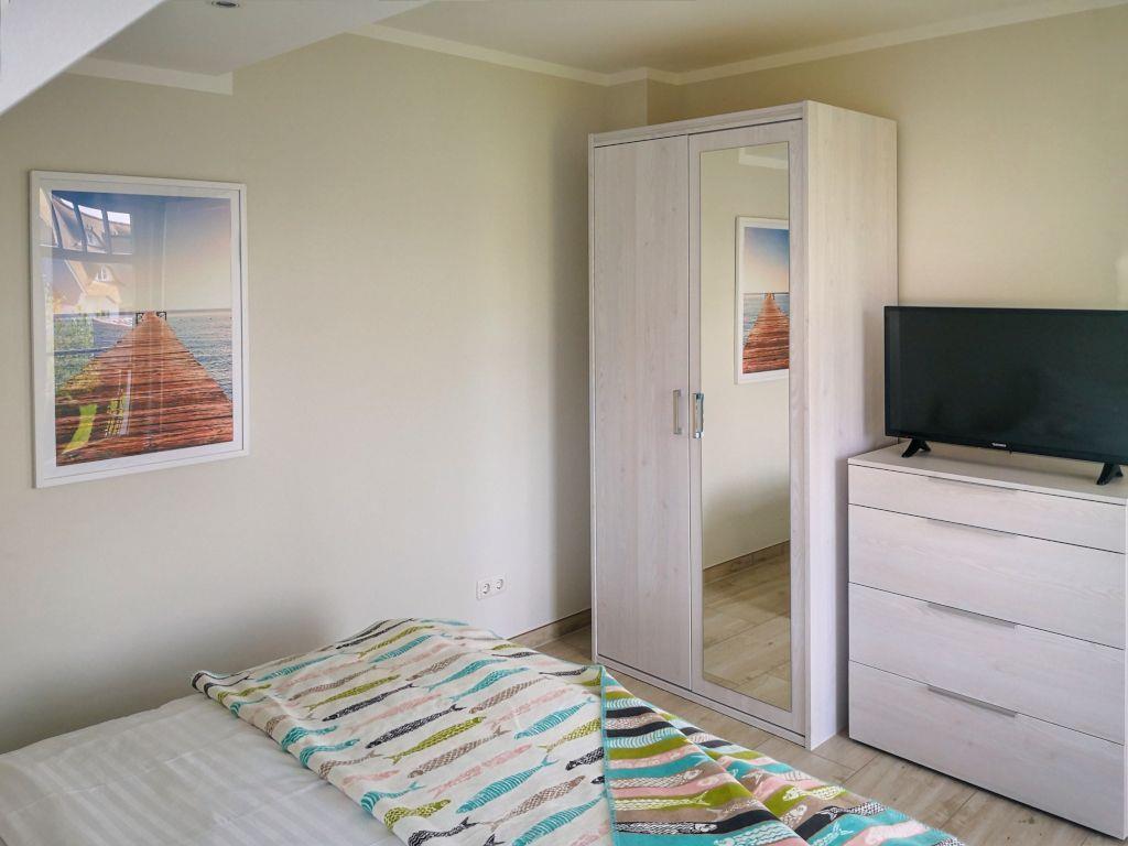 1 Schlafzimmer mit Doppelbett (1,80x2,00m), Federkernmatratzen, verstellbare Lattenroste, TV, Kleiderschrank, Kommode mit 4 großen Schubfächern, Verdunklung
