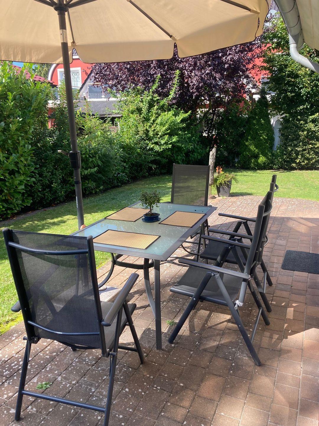 ist. Sitzmöglichkeiten, Sonnenliegen und Sonnenschirm sorgen für Wohlfühlatmosphäre im