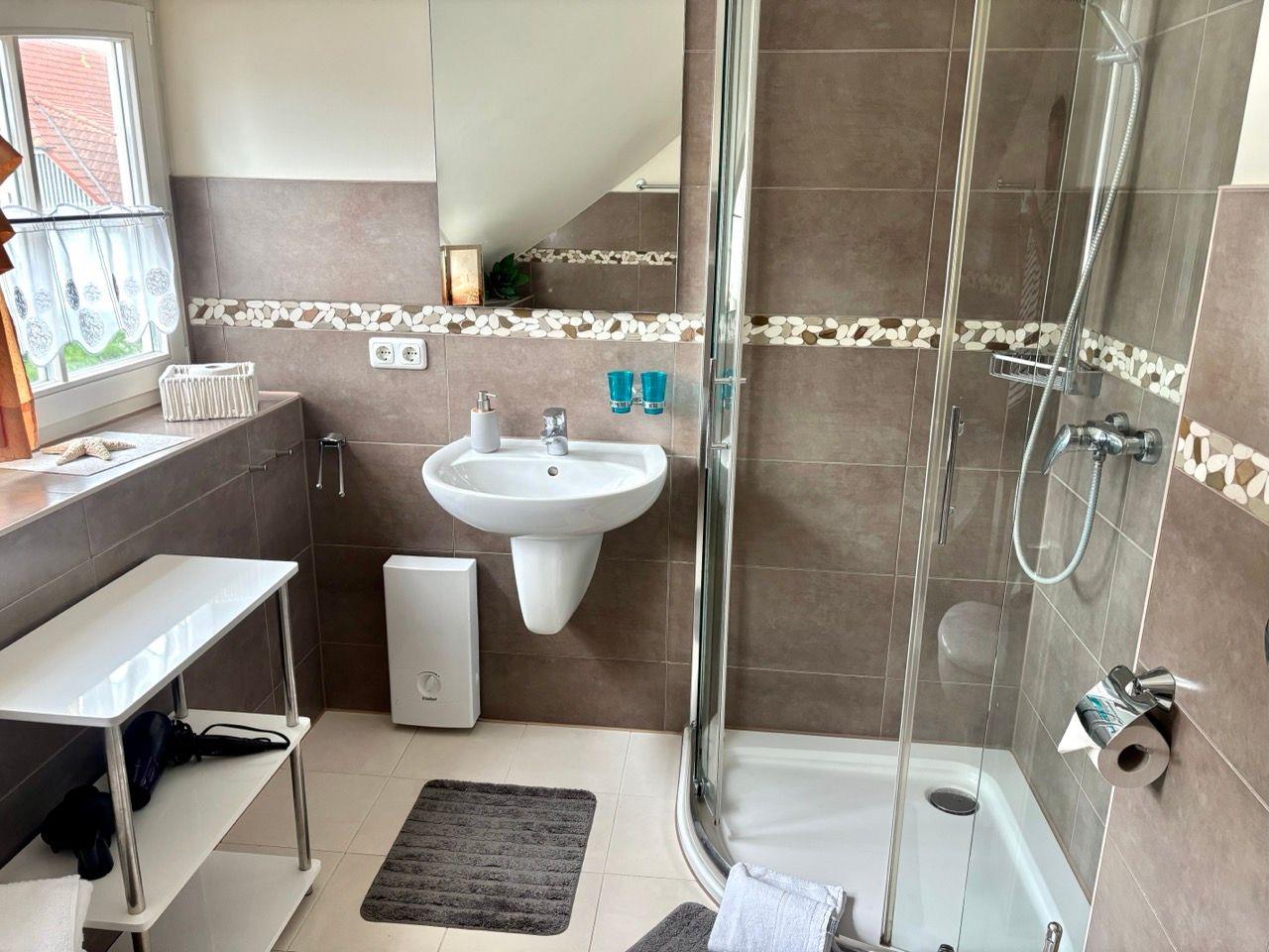 Die zwei vorhandenen Bäder sind jeweils im Erd- und Obergeschoss angeordnet.