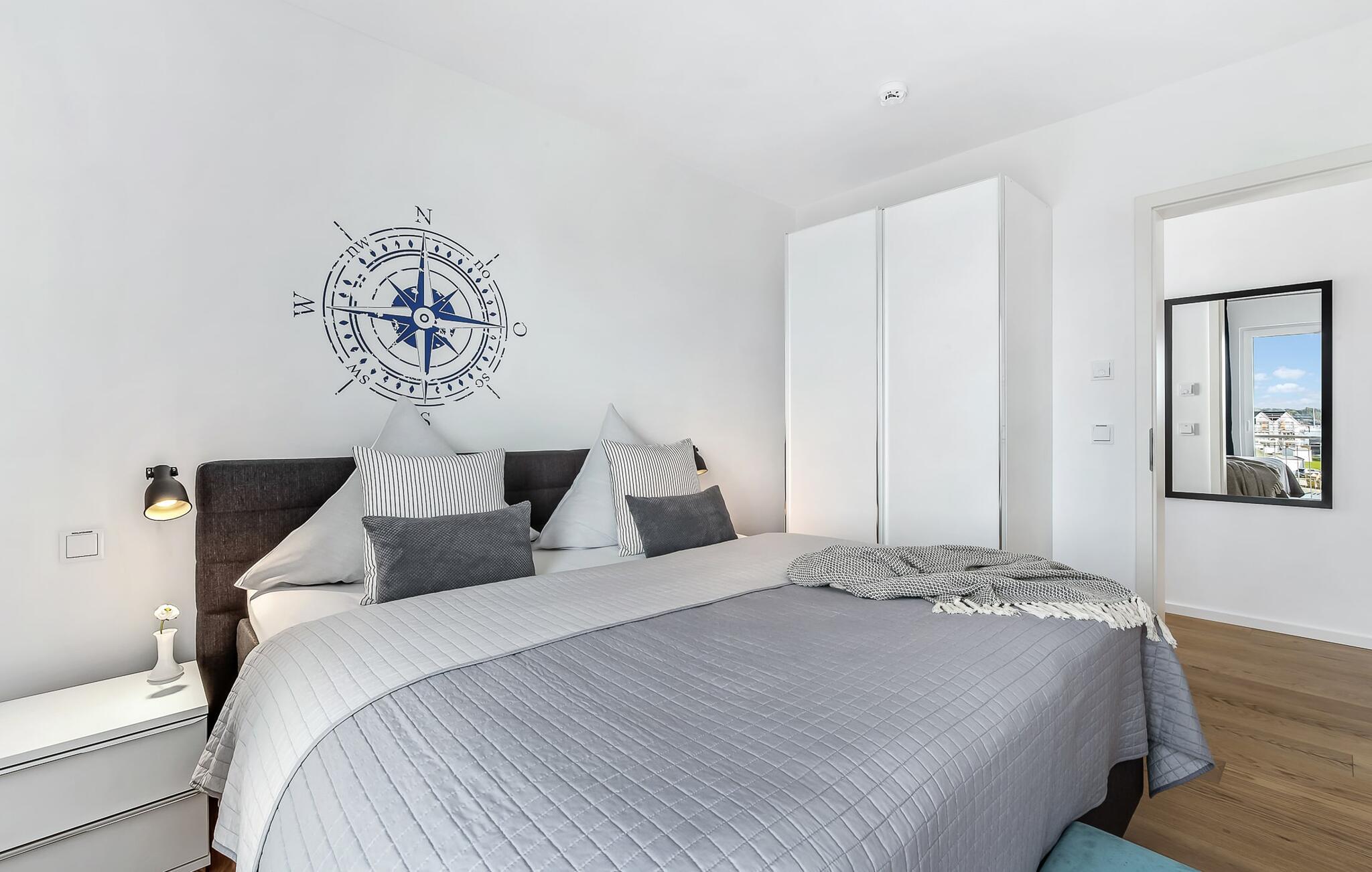 Den smukke og store ferielejlighed OSTSEEGLÜCK til fem personer ligger i umiddelbar nærhed af Weidefelder Strand, som kan nås på få minutter til fods. I kan tilbringe dejlige sommerdage her, men selv i den kølige årstid er det skønt at nyde Østersøluften her og få en lille ØSTERSØLYKKE-følelse. Minigolfbanen med maritimt tema byder på sjov og variation for unge og gamle og er inden for gåafstand. OSTSEEGLÜCK imponerer med sin rummelige stue/spisestue med sine gulv-til-loft vinduer og den tilstødende altan, som har gode siddepladser med havemøbler og inviterer til afslapning. Et hyggeligt sofahjørne med fjernsyn og en moderne spiseplads spreder feriefølelse fra første øjeblik og får hurtigt hverdagen til at svinde hen. Den afslappende lænestol og pejsen bidrager uden tvivl til dette. Sofahjørnet kan omdannes til endnu et soveområde for børn med et soveareal på 80x190cm med få enkle trin. Det integrerede, moderne køkken er veludstyret og får hvert hjerte til at banke hurtigere, hvilket gør madlavning på ferien til en fornøjelse! At spise den tilberedte mad på altanen i aftensolen får alt til at smage endnu bedre og stemningen er en rigtig ferieoplevelse! I det store soveværelse med fjernsyn og dobbeltseng kan lamelstellet indstilles elektrisk og garanterer dermed højeste niveau af sovekomfort. Boxpsring dobbeltsengen i det andet soveværelse er på ingen måde ringere! Begge soveværelser er forbundet med en anden balkon og er måske ideel til stjernekiggeri sammen? Fantastisk aftensol og spektakulære solnedgange er garanteret her. Badeværelset med brusekabine i gulvniveau byder på masser af plads og alt hvad I behøver for at starte en ny dag. OSTSSEEGLÜCK ligger på 3. sal og kan nemt nås med elevator. Til boligen hører en underjordisk parkeringsplads (indgangshøjde: 2m) og en fælles cykelkælder. Det anbefales at tage en cykel med. ferieområdet er et ideelt udgangspunkt for ture omkring Kappeln og Slien. Vores foretrukne sted: gør jer godt tilpas i den afslappende lænestol og læs på en afslappet måde... Bemærk venligst: OstseeResort Olpenitz er meget populært, og der bygges fortsat i parken. Ikke desto mindre kan I se frem til en 5-stjernet standard og et førsteklasses ophold. Byggeaktiviteterne kommer ikke til at forstyrre jer på ferien, og derfor gives der ikke yderligere afslag i prisen.