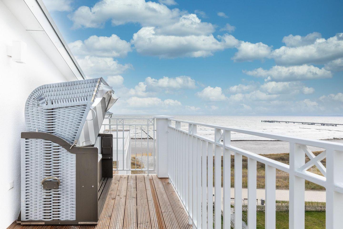 Penthouse-Maisonette mit Galerieschlafzimmer, Balkonen, Strandkorb und Meerblick