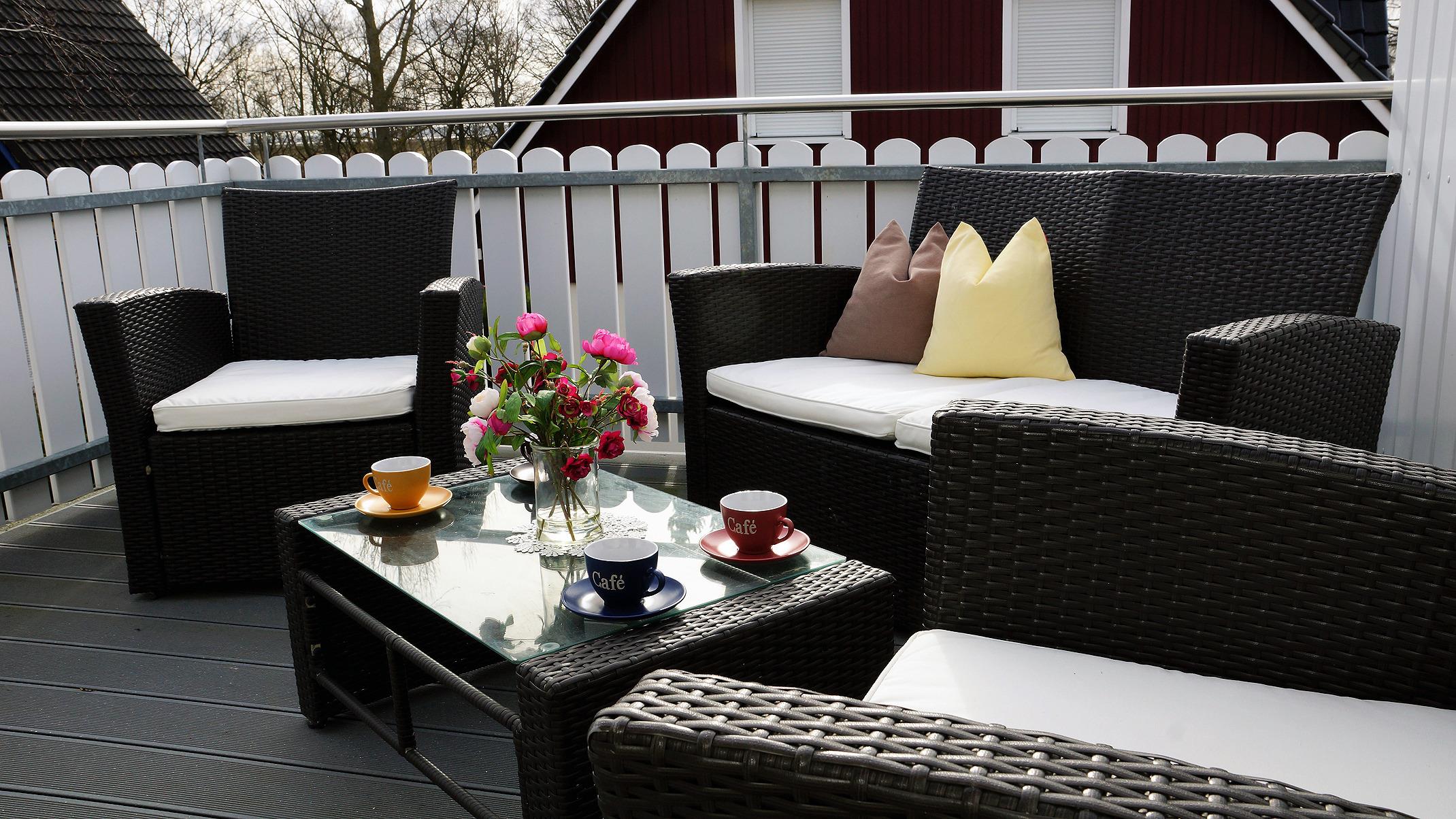 Auf dem Balkon können Sie entspannen, Kaffee trinken oder einfach ein gutes Buch lesen.