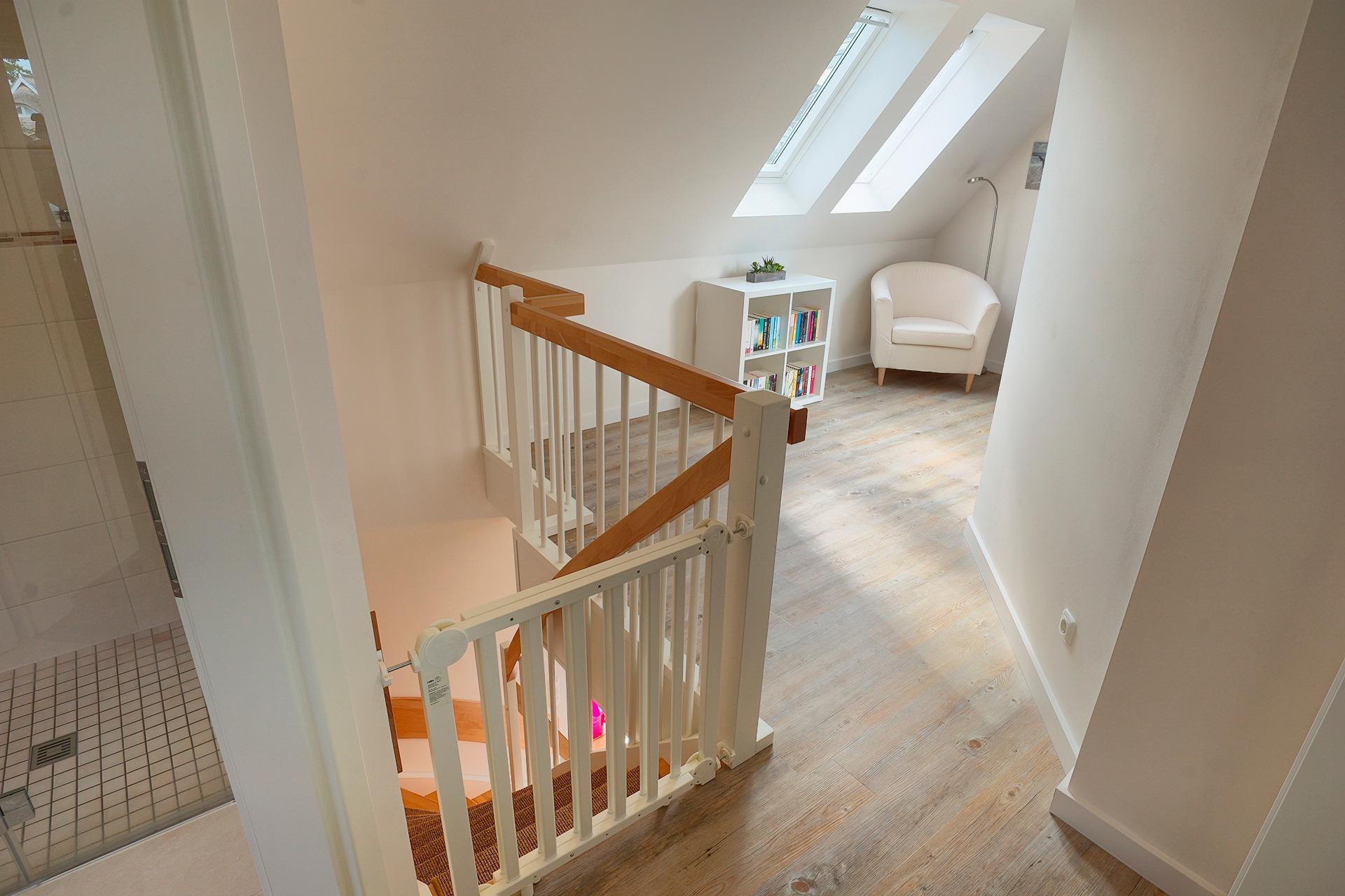 Für Kinder stehen zusätzlich ein Reisebett, ein Hochstuhl und ein Treppenschutz bereit.