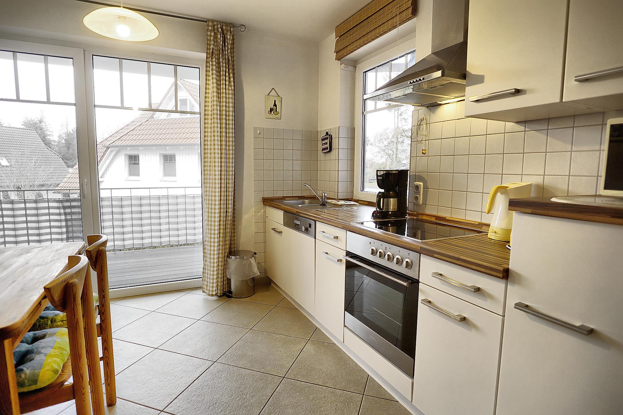 Die 54 qm große, 2007 neu erbaute, Ferienwohnung ist mit viel Komfort für 2-3 Personen eingerichtet. Die Wohnungen sind mit einem Schlafzimmer, einem Doppelbett und einer Ausziehcouch im Wohnzimmer ausgestattet. Dusche und WC sowie ein großzügiger Wohnbereich, in den eine komplett eingerichtete Küche integriert ist, stehen zur Verfügung. Der Balkon ist nach Süd-Westen ausgerichtet.
