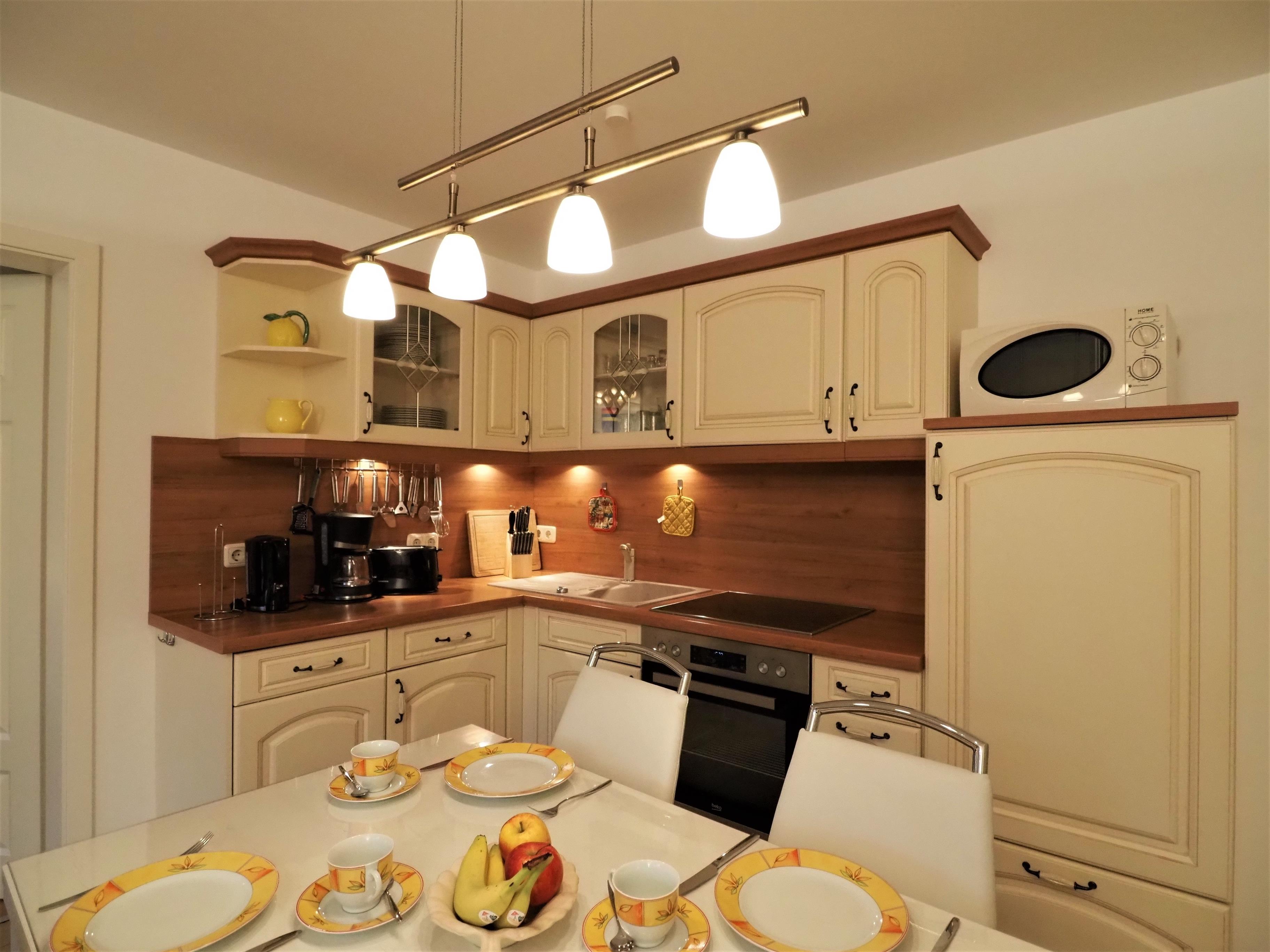 Ihnen stehen neben einem Kühlschrank auch eine Kaffeemaschine und eine Mikrowelle zur Verfügung.