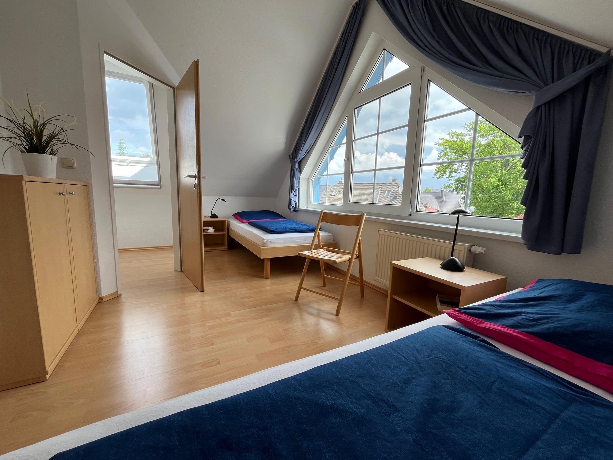 Im Obergeschoss sowie im Dachgeschoss befinden sich die 3 Schlafzimmer (2 x Doppelbett, 2 x Einzelbett) sowie einem Bad mit Dusche und WC.
