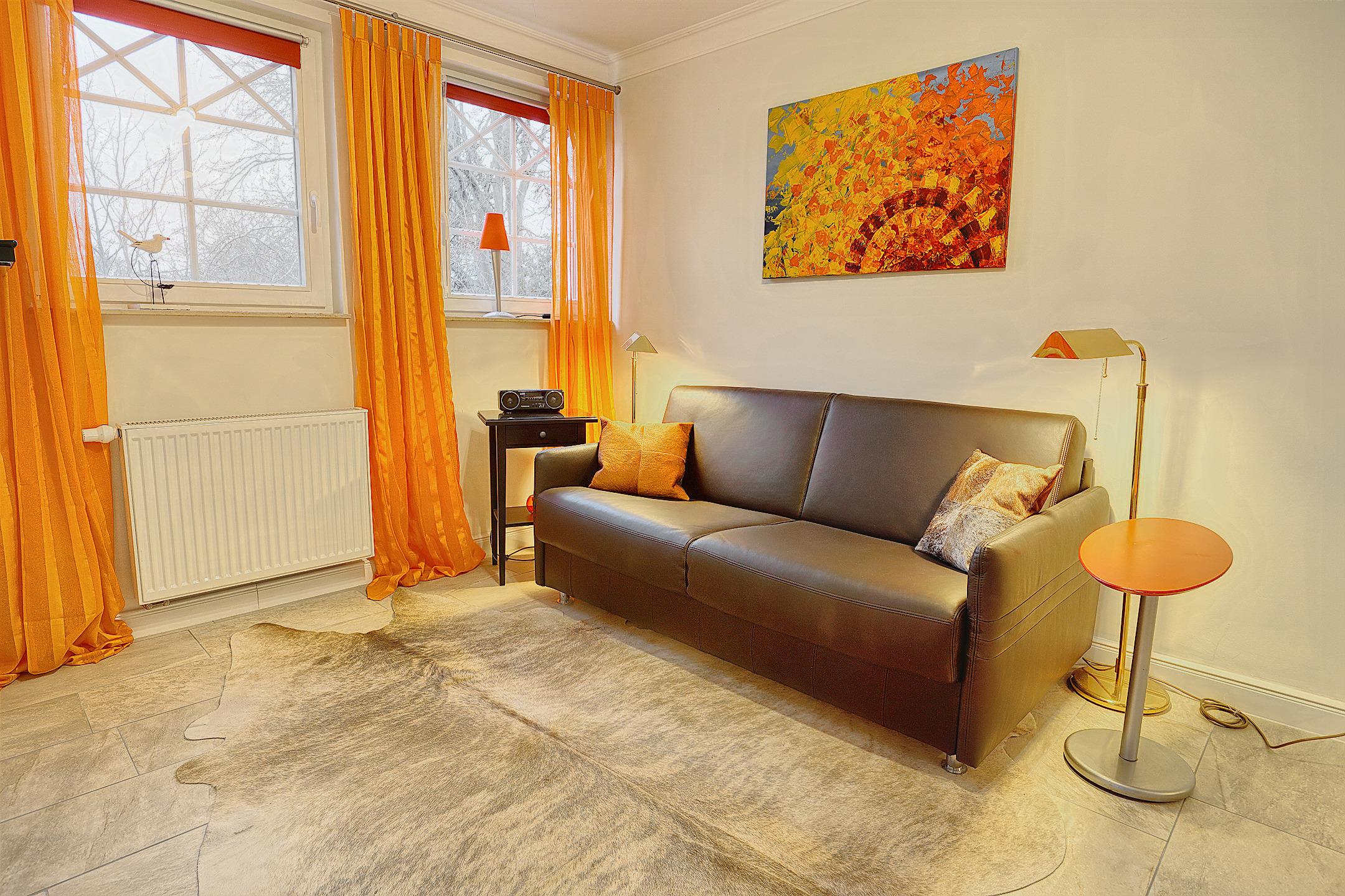 Im Wohn- und jedem Schlafraum befindet sich ein Flachbild - TV. Bei der Einrichtung wurde Wert auf zeitlose Eleganz der hochwertigen Vollholz- und Ledermöbel gelegt. Bequemlichkeit und Wohlbefinden spielten eine große Rolle bei dem Design, den Accessoires und der Farbgebung.