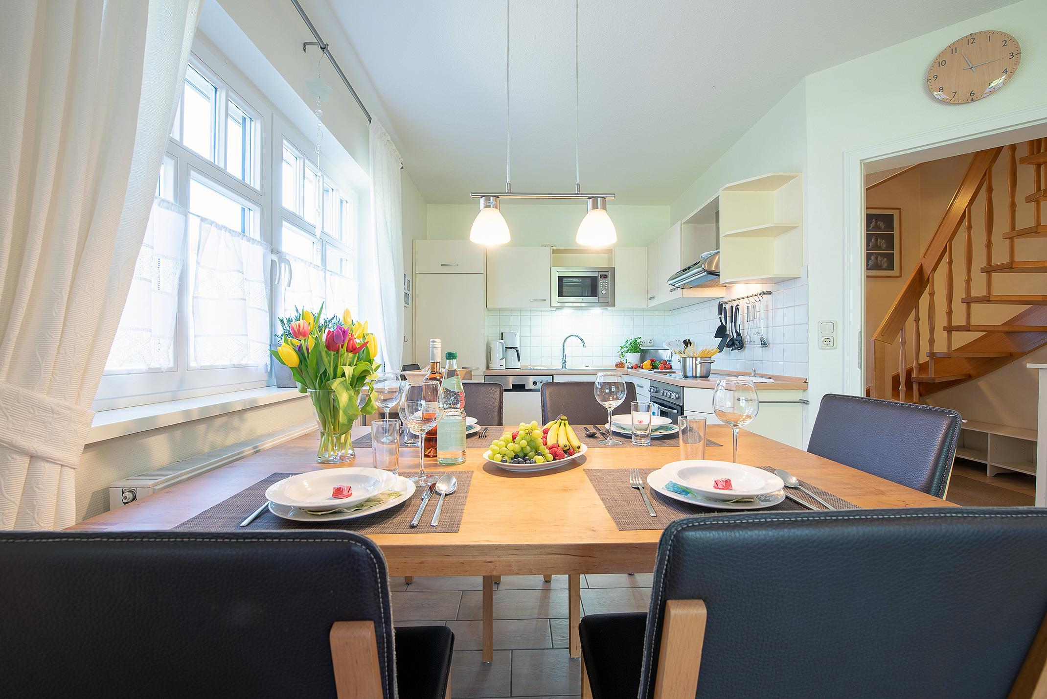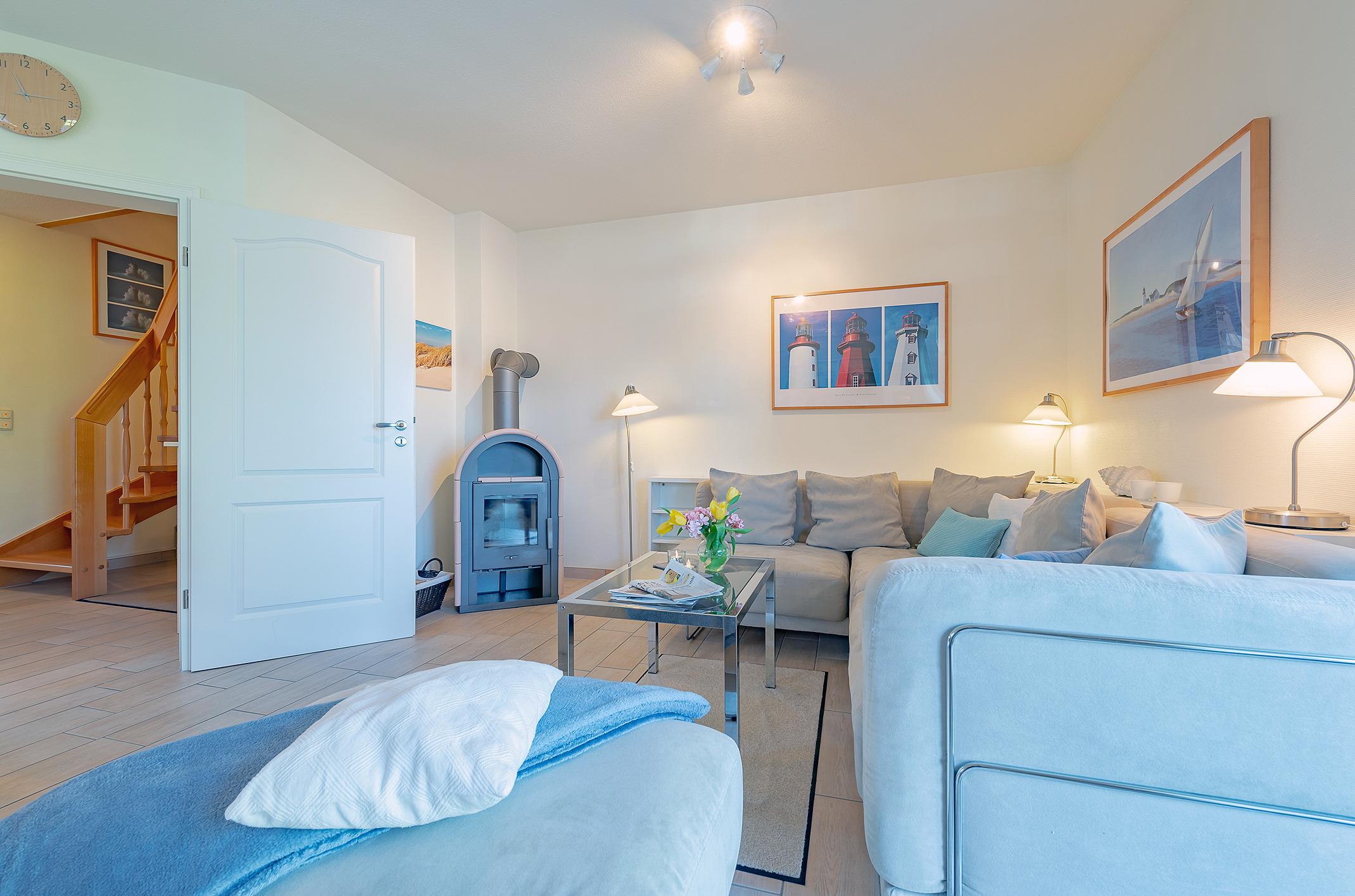 Im Erdgeschoss lädt ein großzügiges Wohnzimmer mit offener Wohnküche und einem einladenden Kaminofen zu gemeinsamen Stunden ein. Nach einem erlebnisreichen Tag am Strand stehen Ihnen zwei Bäder mit Dusche und WC zur Verfügung – dazu im zweiten Stock ein separates WC für Ihre Bequemlichkeit. Die Erstausstattung an Bettwäsche und Handtüchern ist selbstverständlich inklusive.