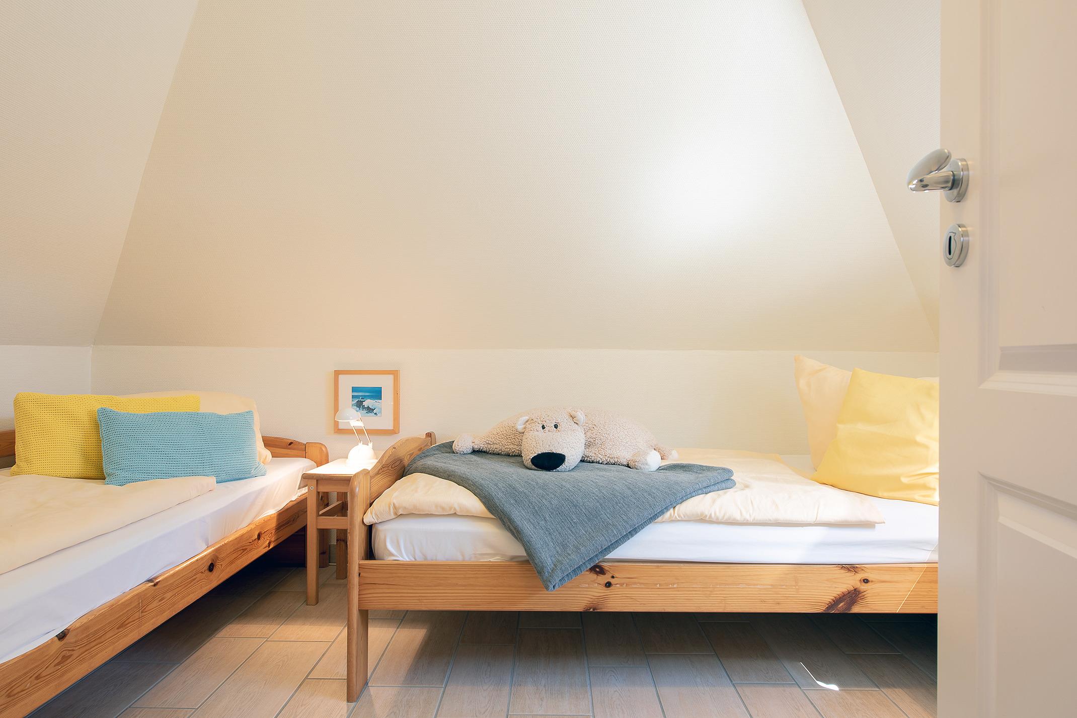 Herzlich willkommen im idyllischen Haus Bullerbü! Hier erwartet Sie eine entspannte Auszeit für bis zu 6 Personen in drei behaglichen Schlafzimmern – zwei mit gemütlichem Doppelbett im Obergeschoss und eins mit zwei Einzelbetten im charmanten Dachgeschoss. Für die Kleinsten steht ein extra Kinderbett sowie ein Hochstuhl bereit.