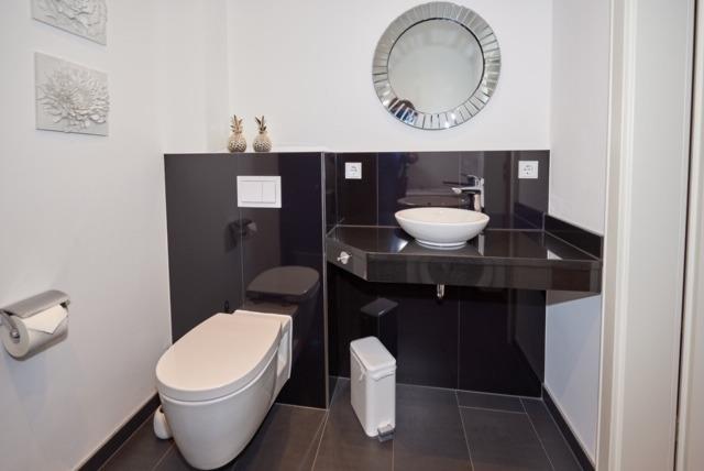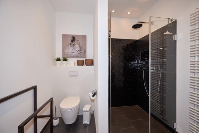 Die Ferienwohnung hat zwei separat und individuell eingerichtete Schlafzimmer, jeweils ausgestattet mit einem Boxspringbett und einem eigenen TV. Sowohl vom Wohnbereich als auch durch die Schlafzimmer haben Sie Zugang zum dazugehörigen Garten und der Terrasse. Neben dem modern gestaltetem Badezimmer mit ebenerdiger Dusche, verfügt die Wohnung außerdem über ein Gäste WC.