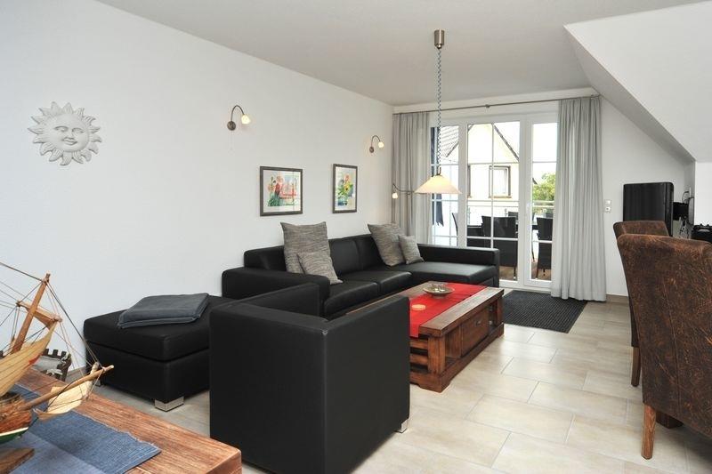 Freuen Sie sich auf eine traumhafte Ferienwohnung in exponierter Lage mit teilweisem Blick auf den Bodden, Sauna, Kamin und W-LAN!