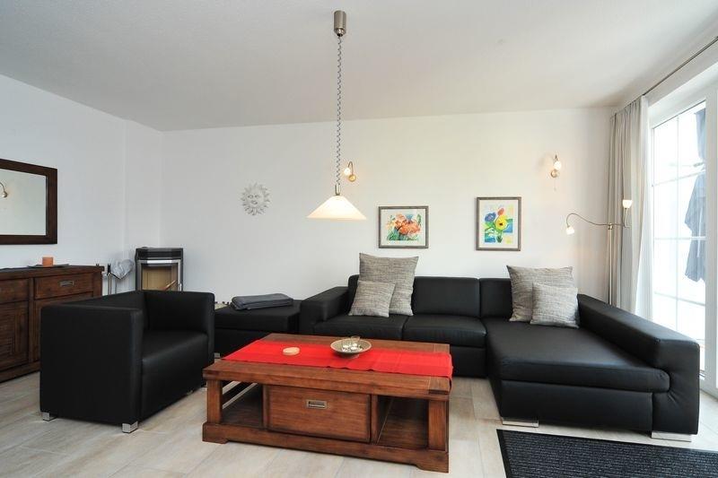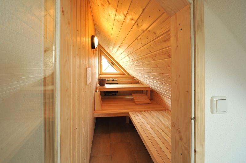 Der Wohnbereich lädt zum Verweilen ein. Der Kamin sorgt besonders an kalten Wintertagen für wohlige Atmosphäre. In der voll ausgestatteten Küche können Sie leckere Gerichte zubereiten, die Sie dann am Esstisch verzehren können. Darüber hinaus verfügt die Ferienwohnung über 2 Schlafzimmer mit Doppelbett und 2 Badezimmer, eines davon sogar mit Sauna!
