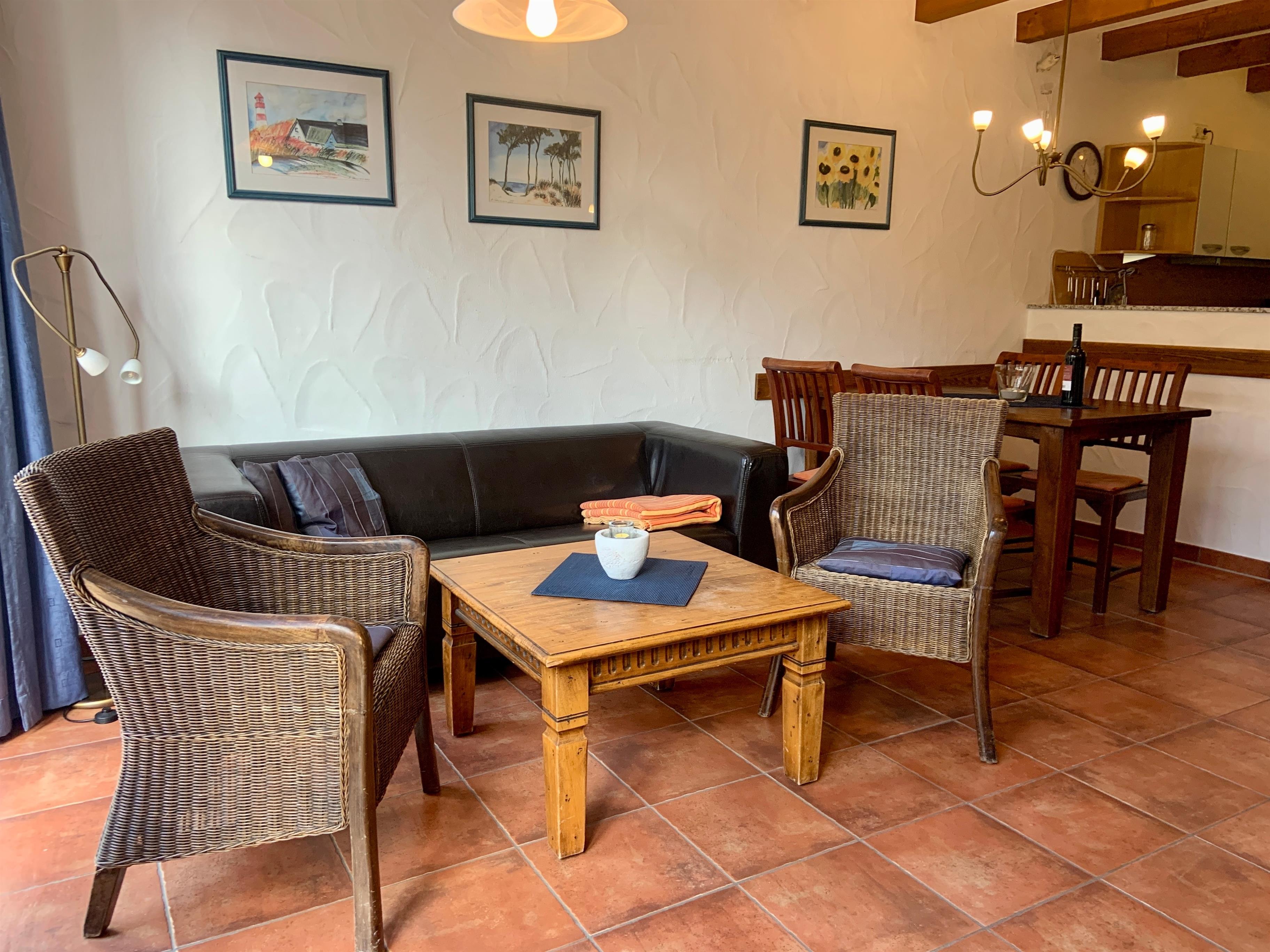 Das Wohnzimmer ist rustikal eingerichtet und die Küche ist komplett ausgestattet, sodass es an nichts fehlen wird. Die zwei Schlafzimmer im Obergeschoss verfügen jeweils über ein Doppelbett. Die zwei Bäder sind jeweils mit einer Dusche ausgestattet. Im Erdgeschoss werden die Räume dur eine Fußbodenheizung beheizt.