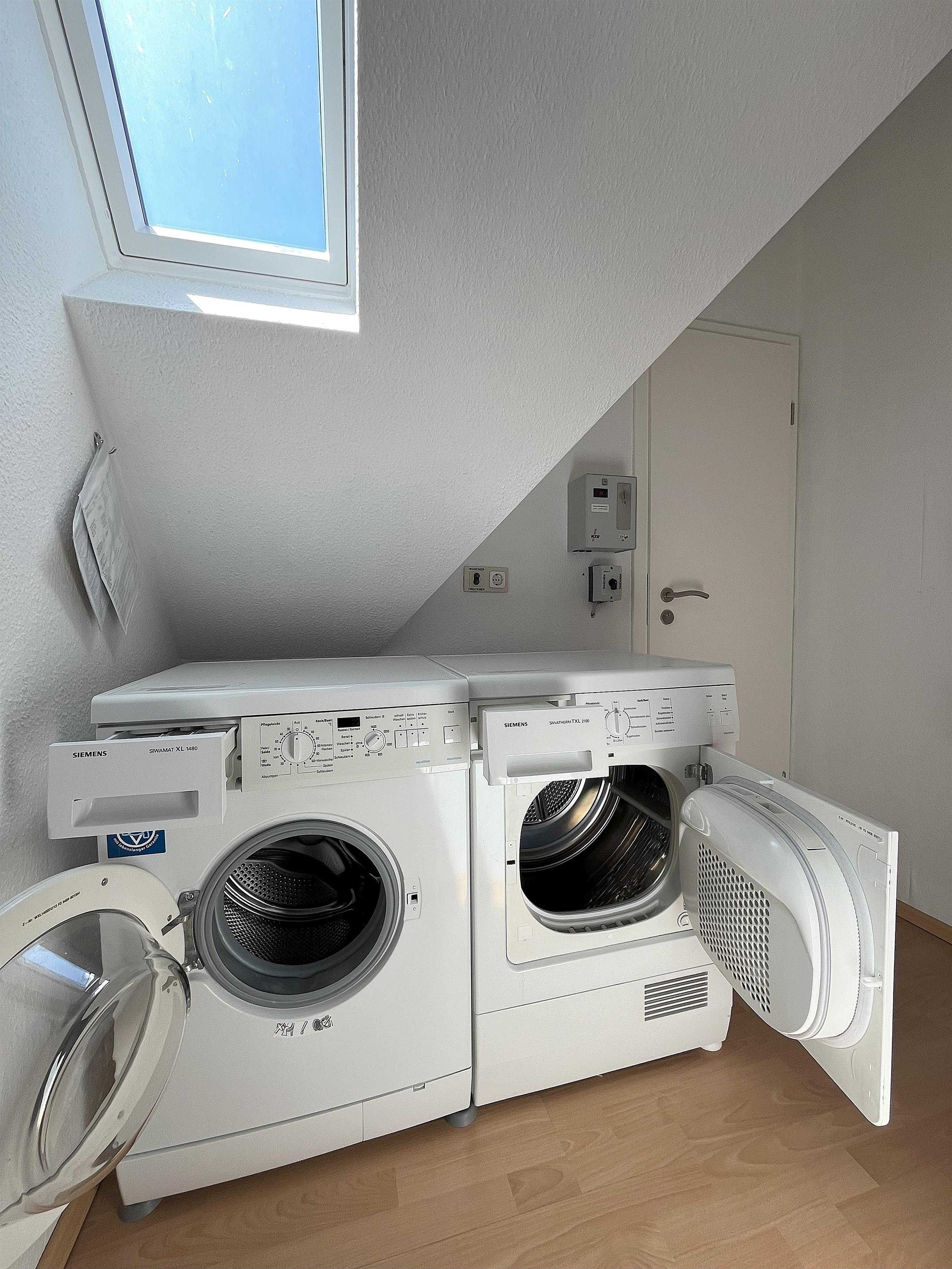 Waschmaschine, Trockner gegen Gebühr.