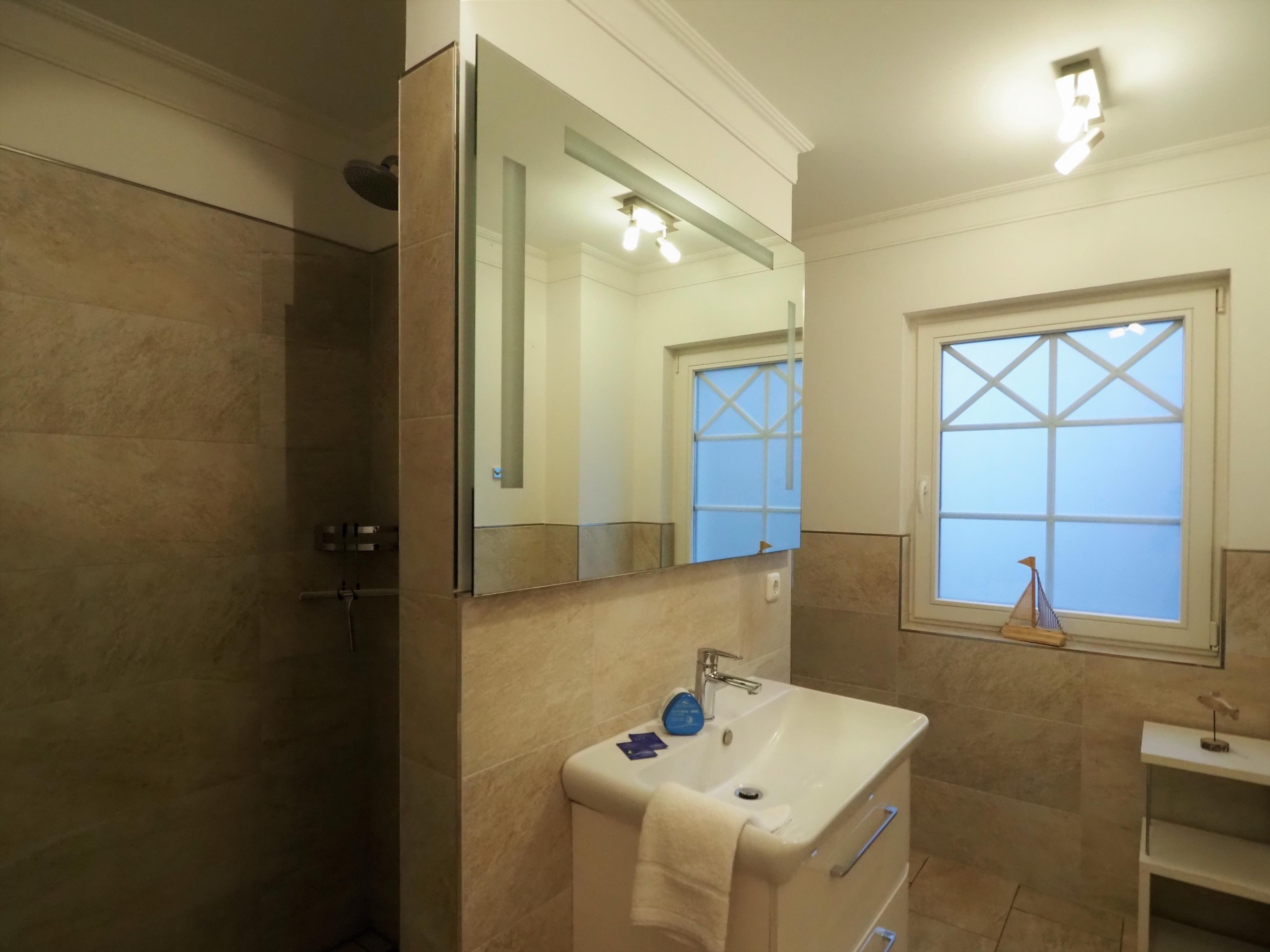 Durch die bodengleiche Dusche im Bad, das erhöhte Boxspringbett in einem Schlafzimmer sowie den geräumigen Aufzug bietet die Ferienwohnung auch Personen mit körperlichen Beeinträchtigungen einen erholsamen Urlaub.