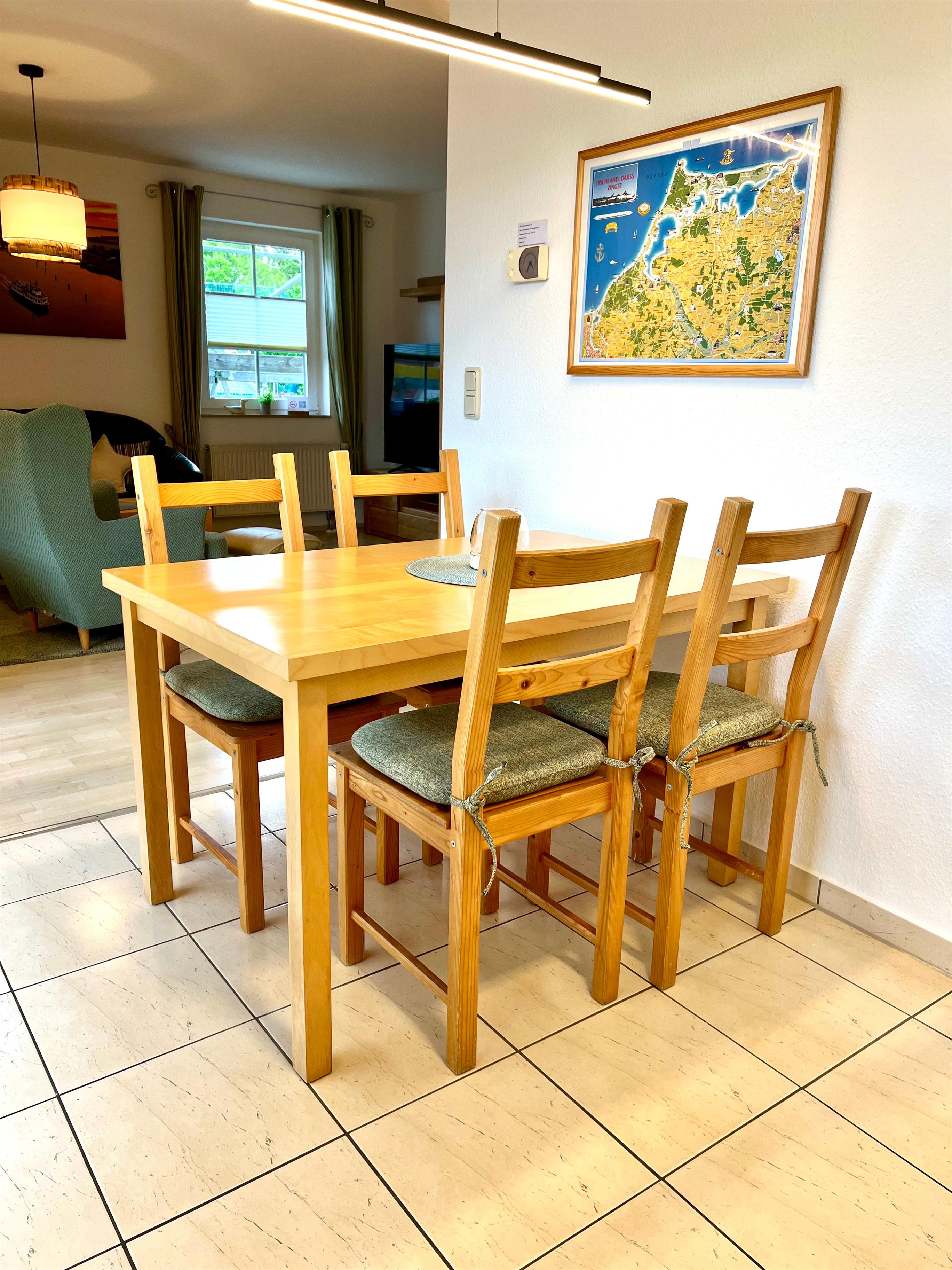Gerne stellen wir Ihnen ein Babybett zur Verfügung. Sie haben ein Auto dabei? Ein PKW - Stellplatz gehört zu der Ferienwohnung. Die Unterkunft liegt ideal für Strandliebhaber mit ca. 3 Gehminuten zum schneeweißen, feinsandigen Strand und ca 10 Gehminuten zum Zingster Strom (Bodden). Kinderspielplatz, EDEKA Markt, Sportstrand, Fahrradverleih, Restaurant, alles in Ihrer Nähe.