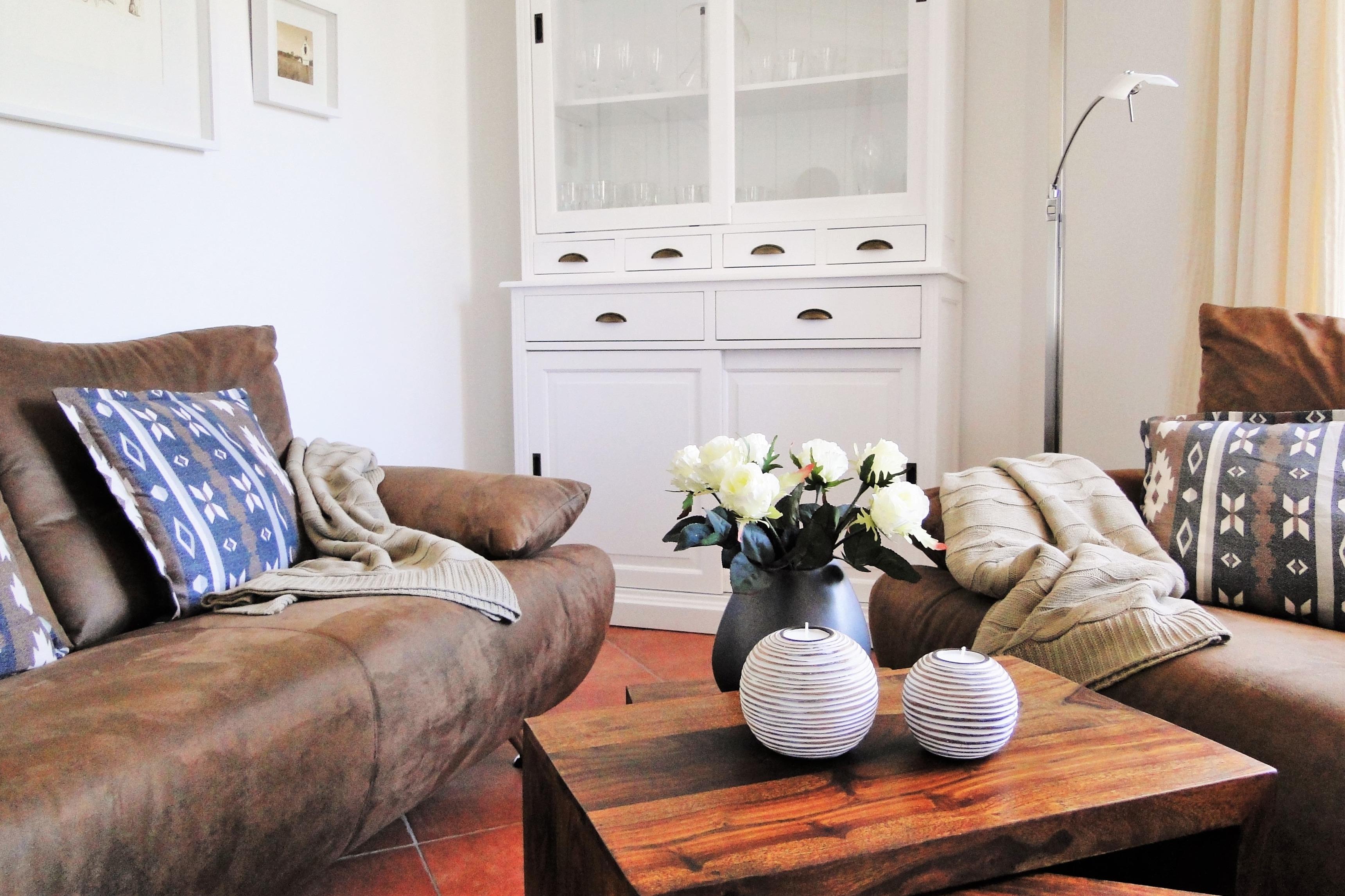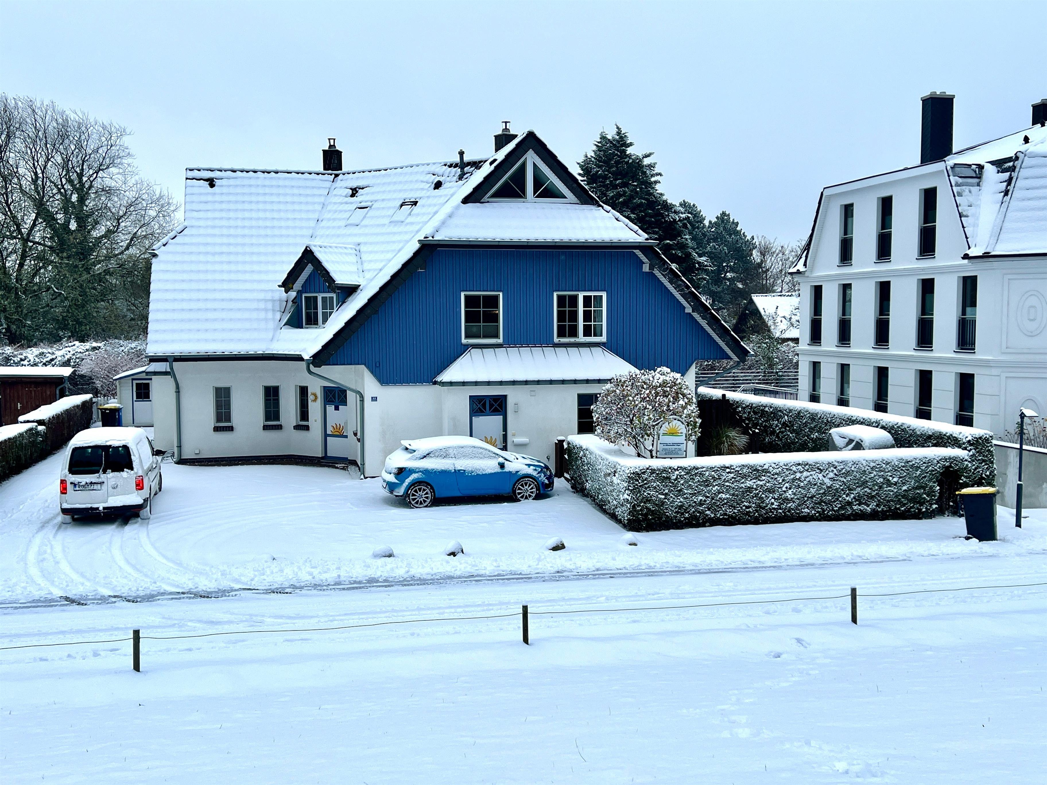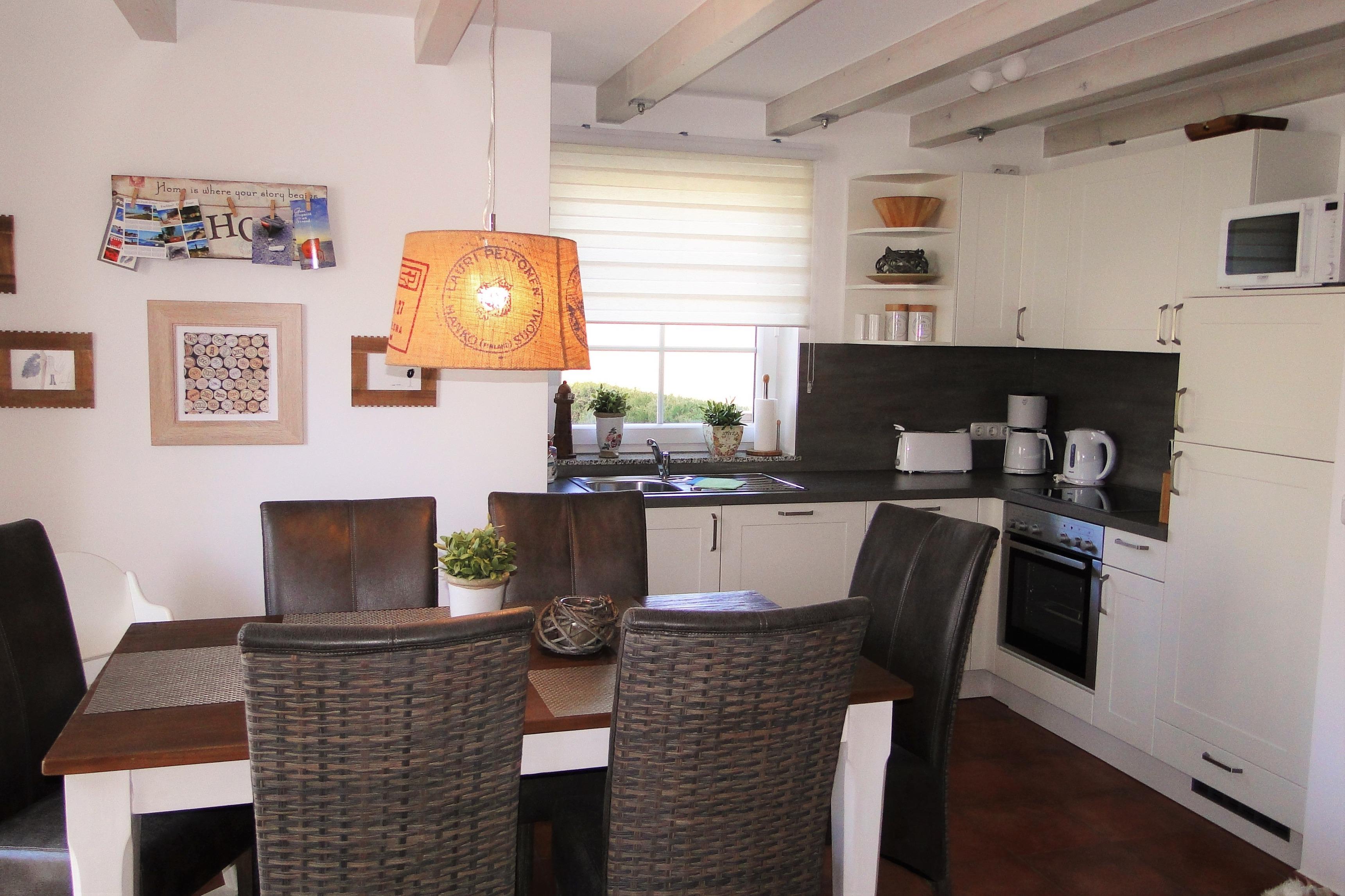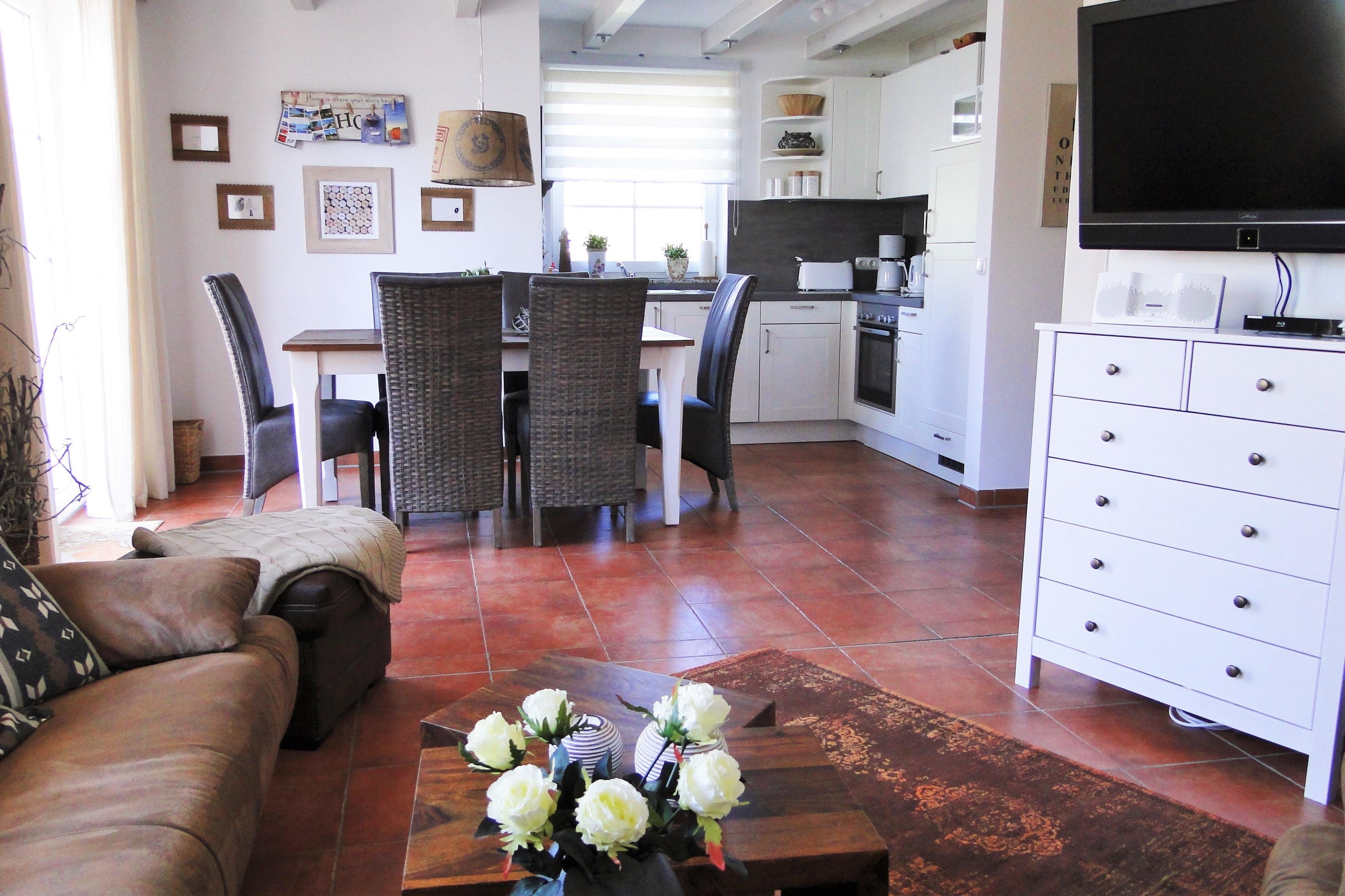 Es erwartet euch ein exklusives, gemütliches und abgeschlossenes Hausteil mit offenem Wohn-Essbereich + Kaminofen, 3 Schlafzimmern, 2 Bäder, Sauna, Holzterrasse mit Markise inkl. einem kleinen, eingezäunten Garten mit Strandkorb und PKW Stellplätzen vor dem Haus.