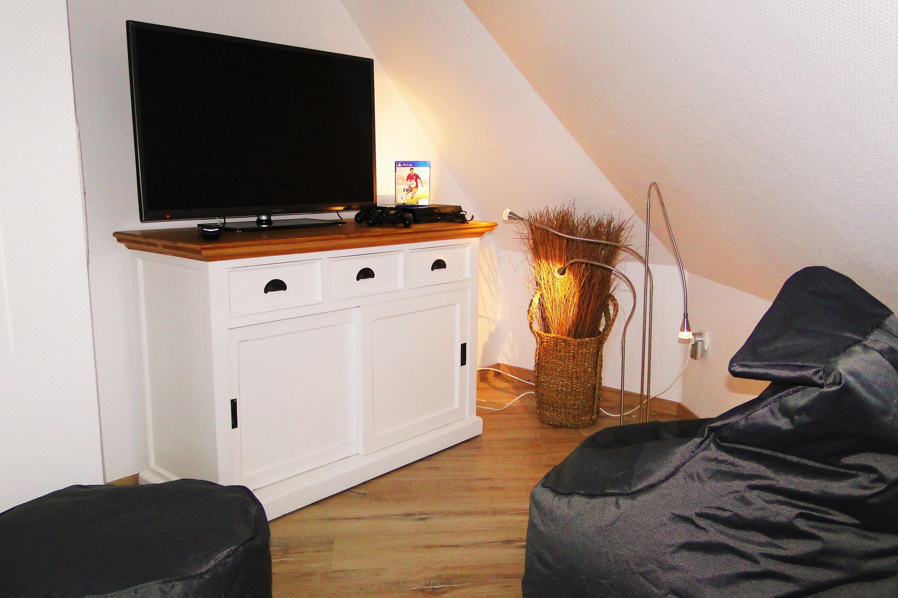 Bei schlechtem Wetter für Kids oder auch für verspielte Erwachsene haben wir ein Flachbild TV mit einer Playstation 4 und Sitzsäcke im Spitzboden. (Spiele auf Wunsch)