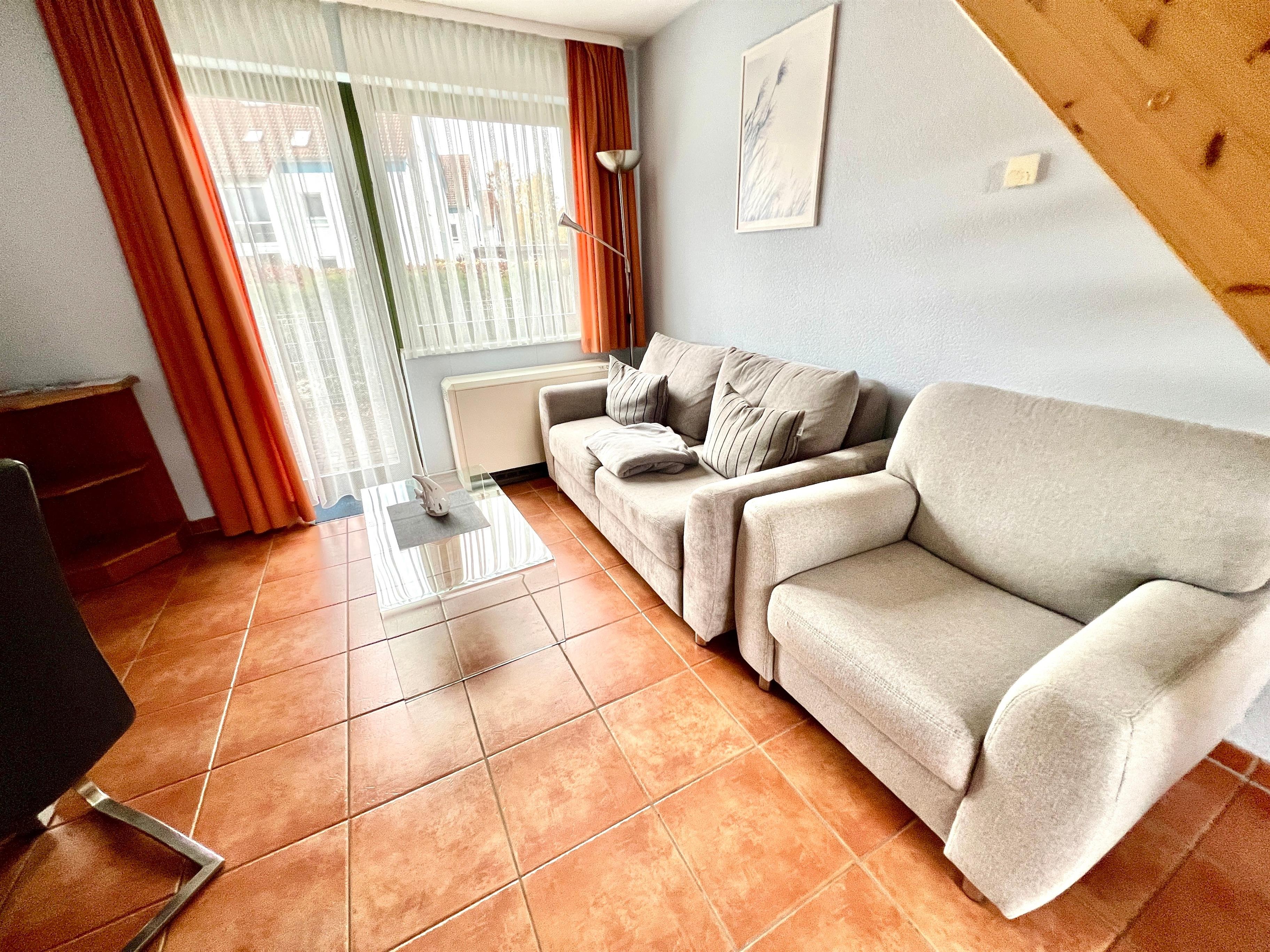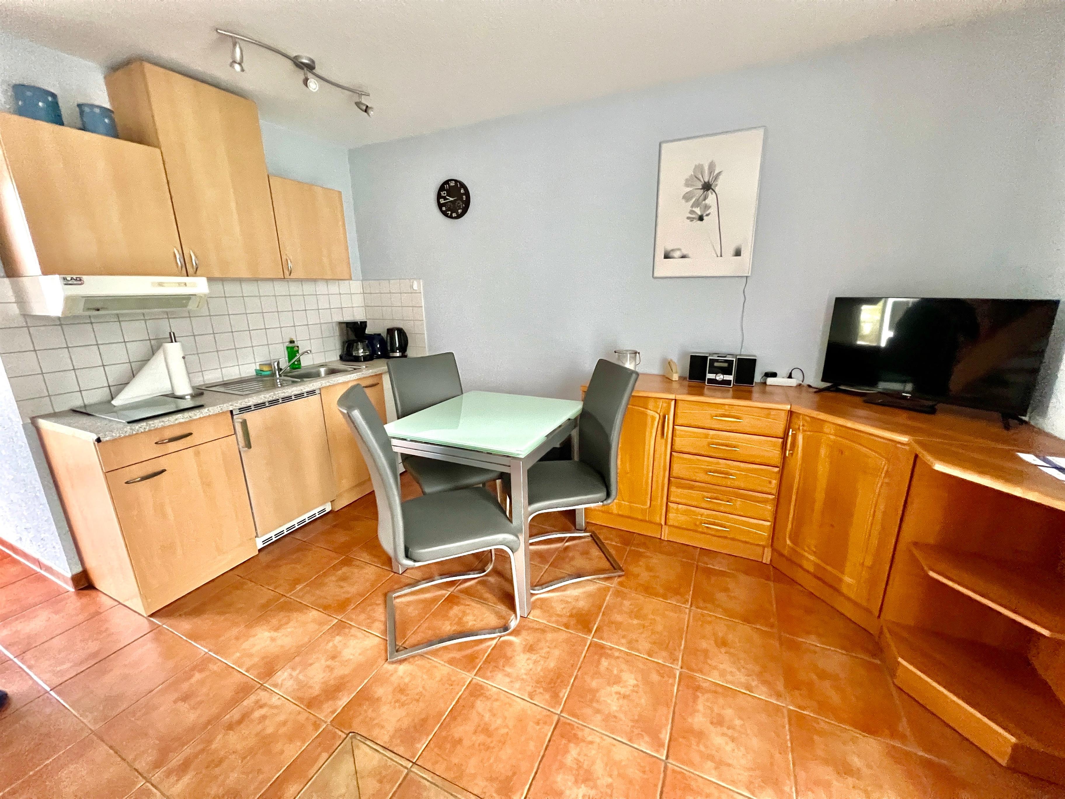Gemütliche Ferienwohnung auf 42qm. Unten Wohnbereich mit Sofa,Sessel, FlachTV, Radio und kleiner Küchenzeile mit sehr guter Ausstattung. Angeschlossener Terrasse mit Gartenmöbeln zum sonnen oder einfach nur entspannen.